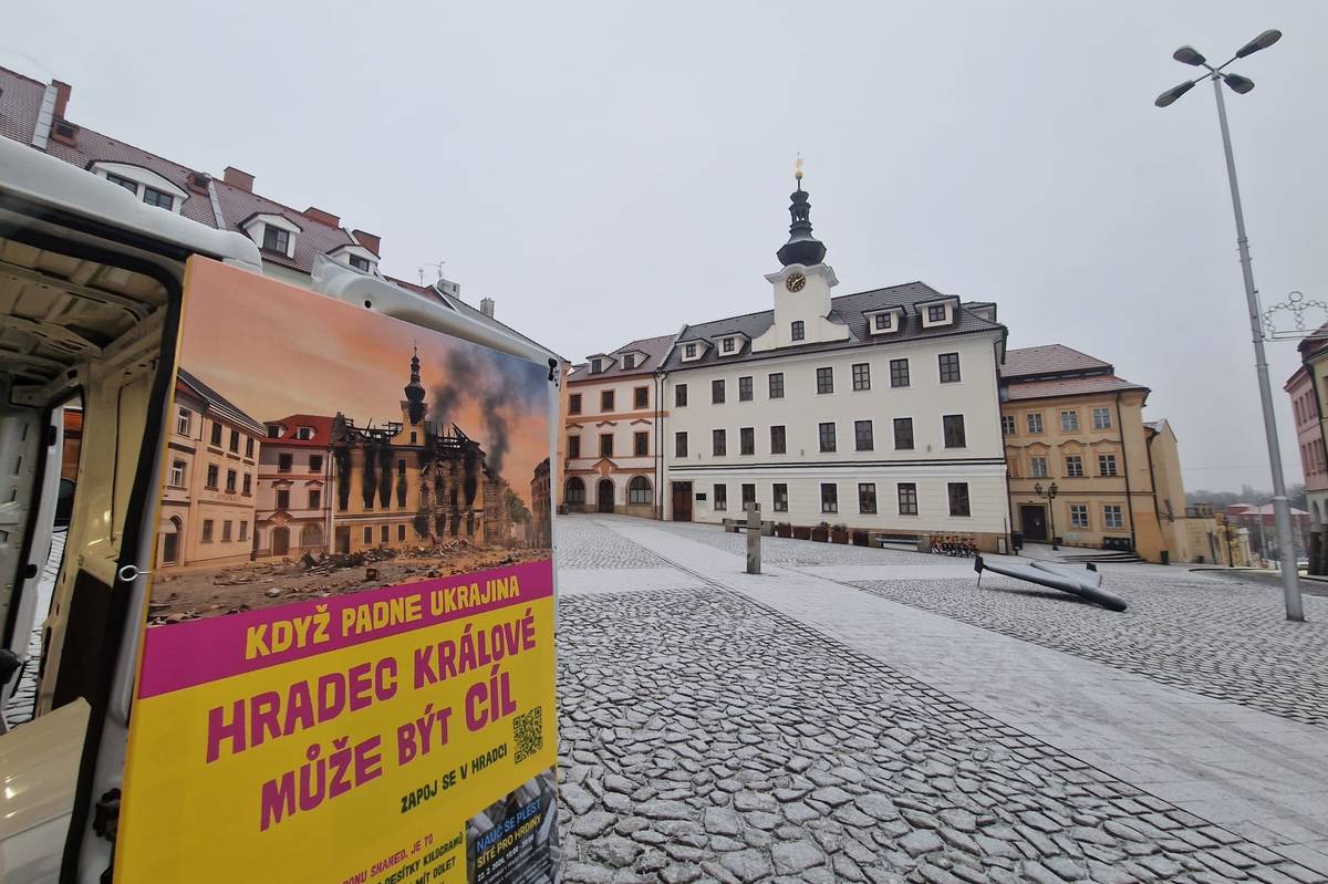 Maketu dronu na Malém náměstí v Hradci Králové doprovodí panelová minivýstava.