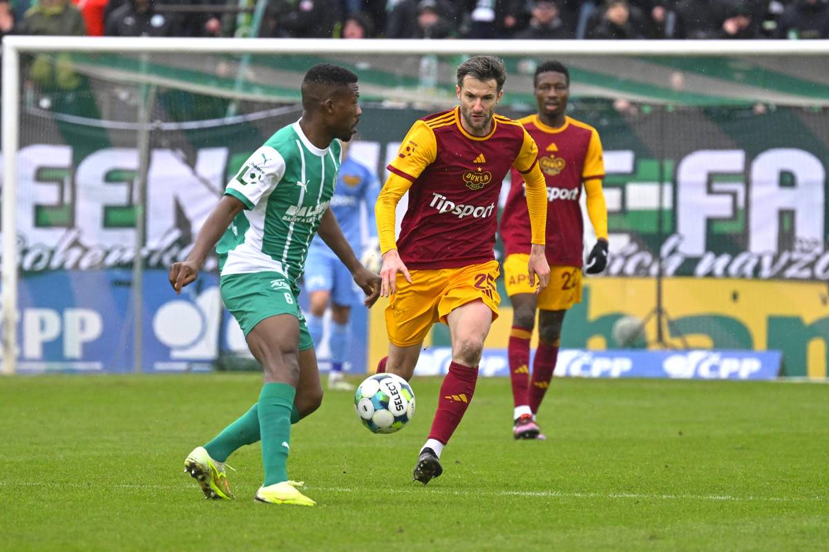Benson Sakala z Bohemky a Marek Hanousek z Dukly Praha