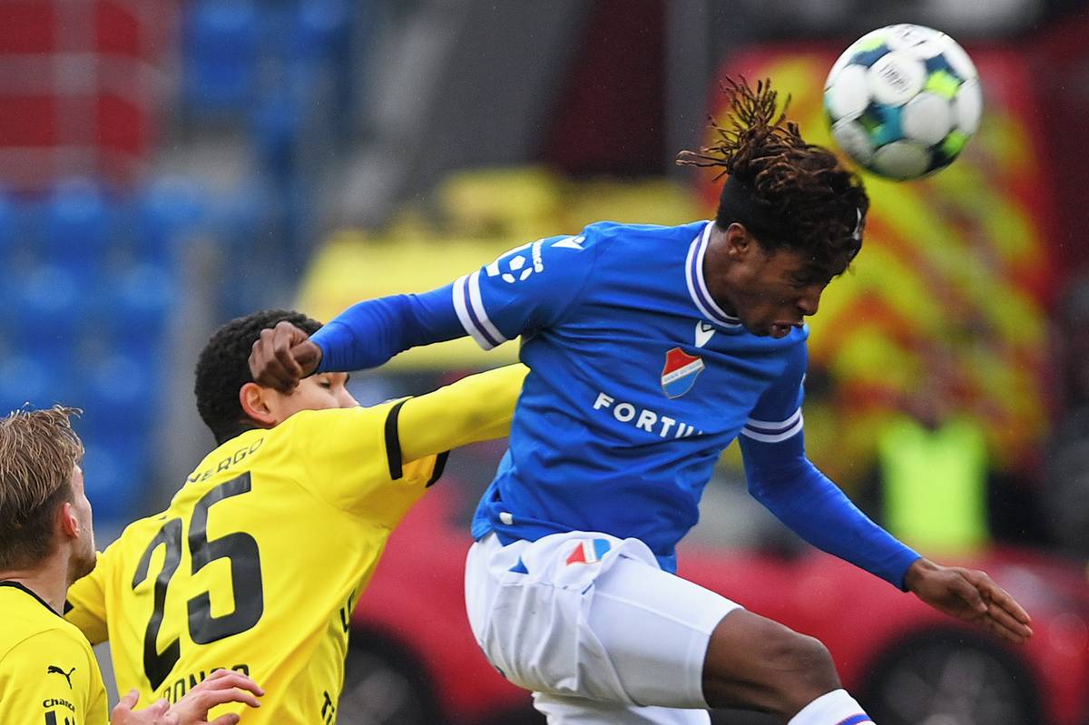 Christophe Kabongo z Mladé Boleslavi a Abdullahi Bewene z Ostravy