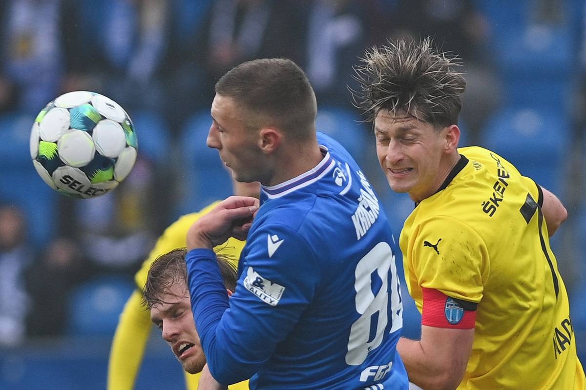 Zleva Matěj Kadlec z Bohemians a Kevin-Prince Milla z Dukly.