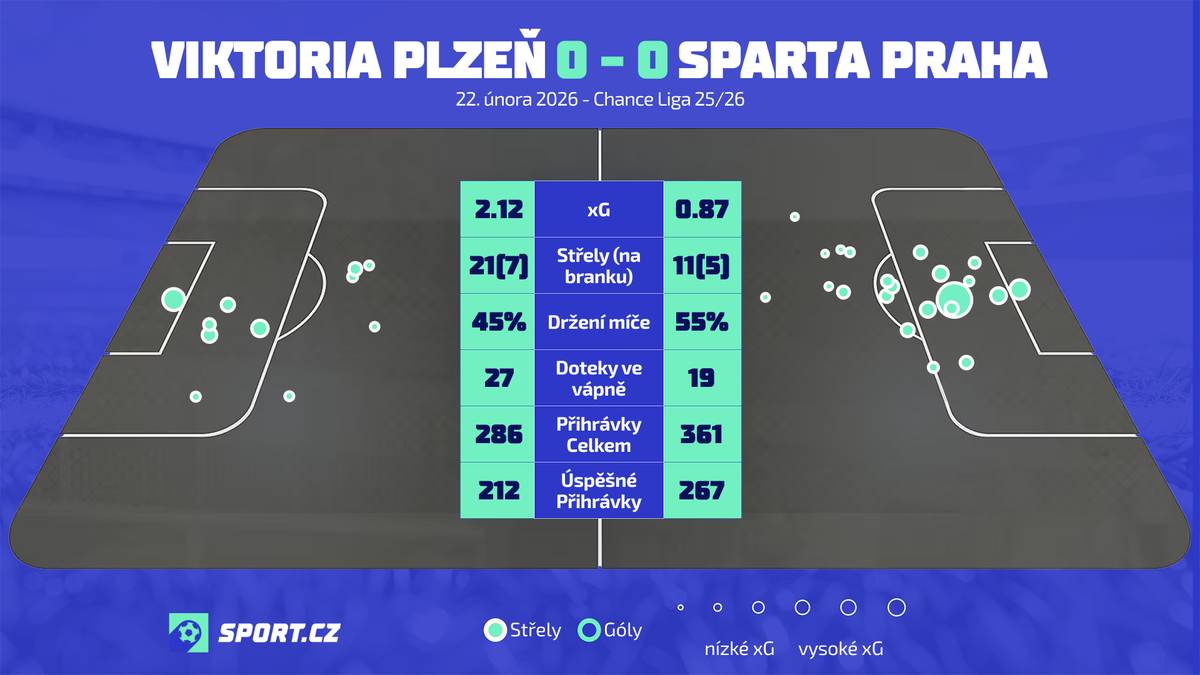 Vybrané statistiky z ligového utkání mezi Plzní a Spartou dle dat společnosti Opta.