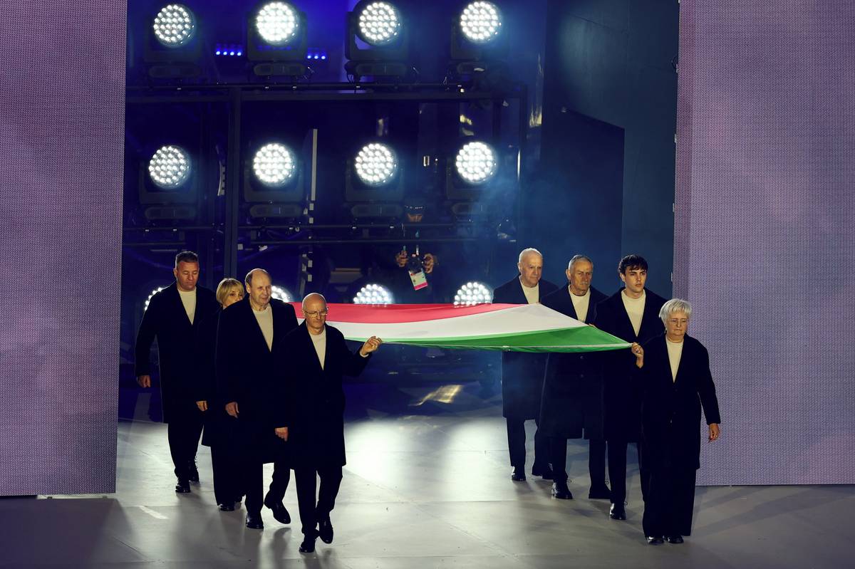 Italskou vlajku k ceremoniálu přinesli bývalý sportovci či lidé, kteří se na organizacei her podíleli.