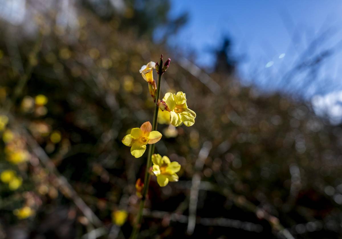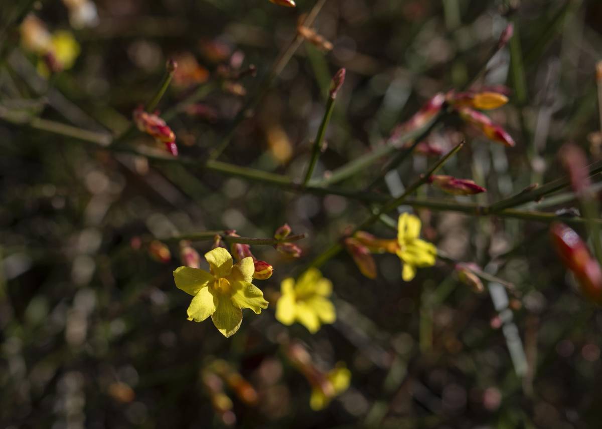 Jasmín nahokvětý a jeho sytě žluté lístky.