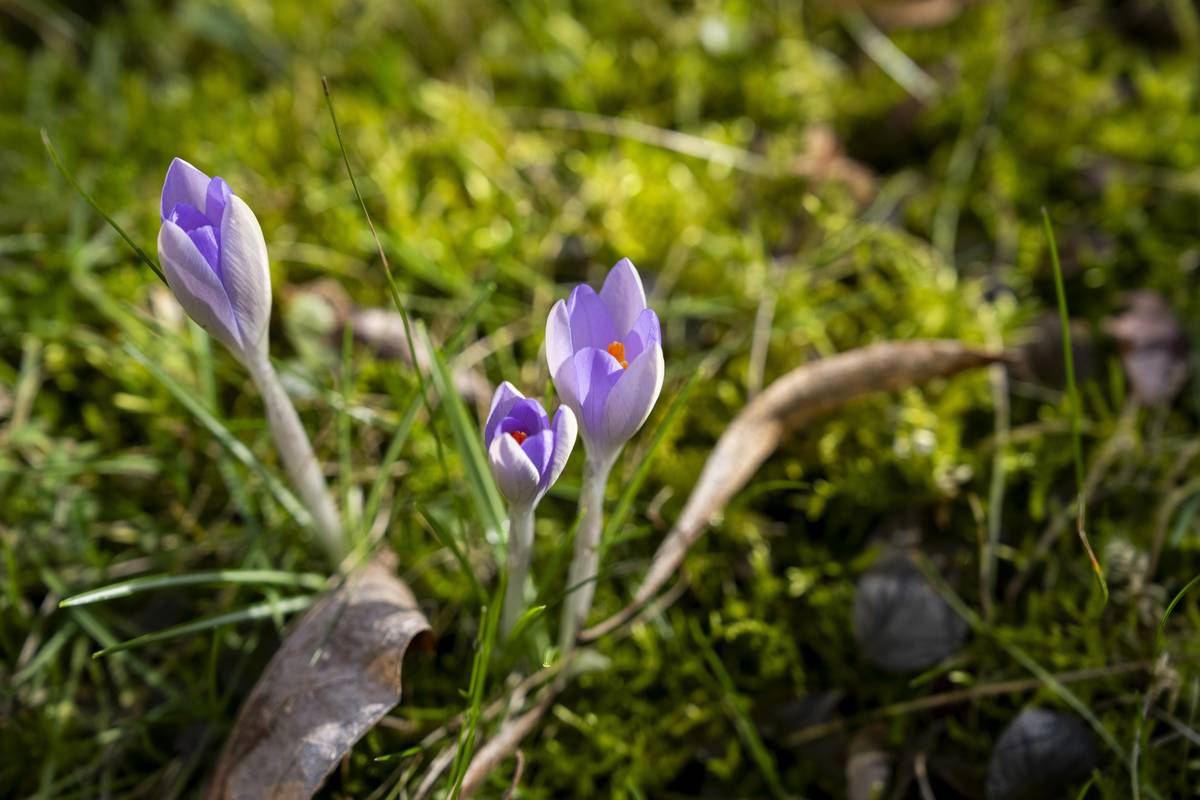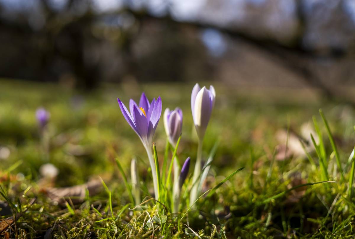 Jaro dělá pokusy, vystrkuje krokusy… Šafrán Tommasiniho (krokus) otevírá fialové květy slunečním paprskům.