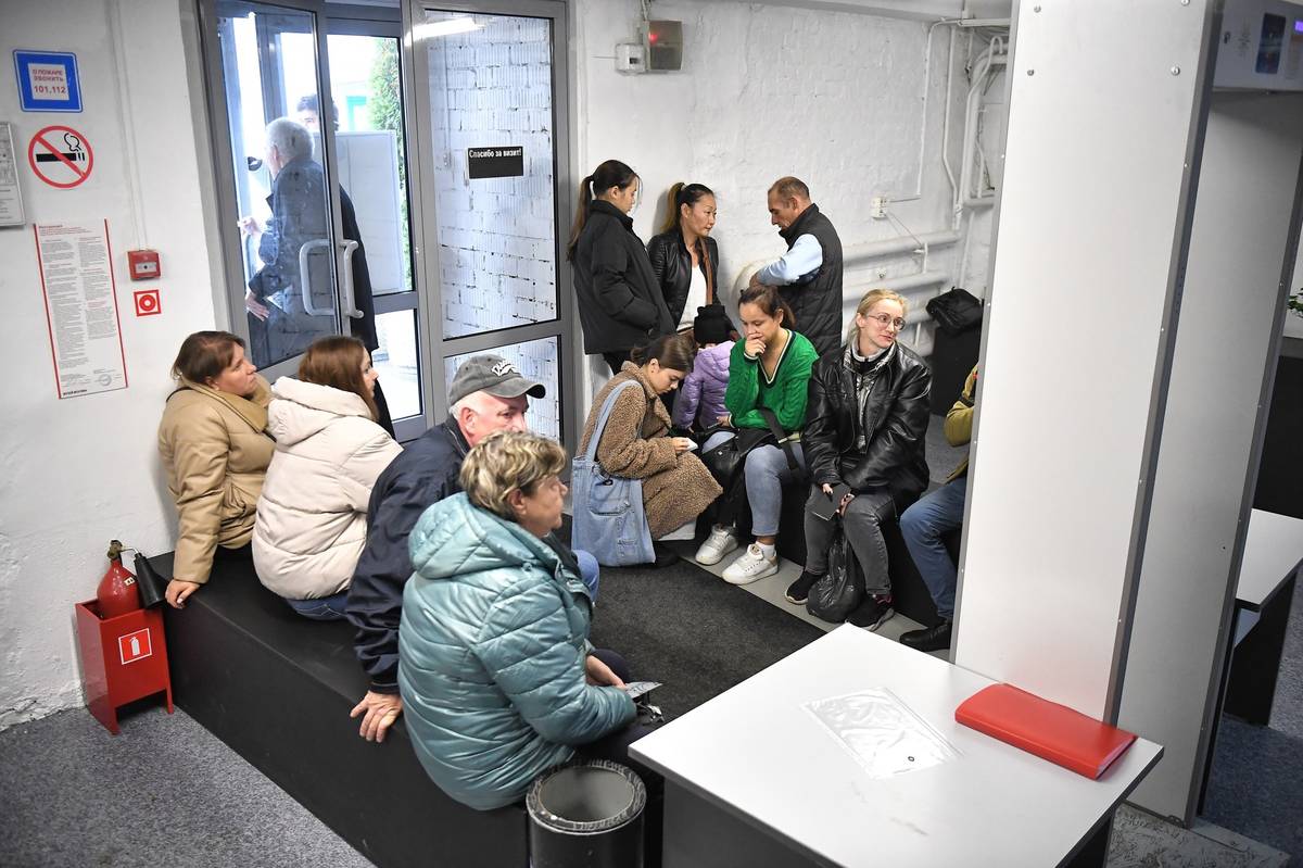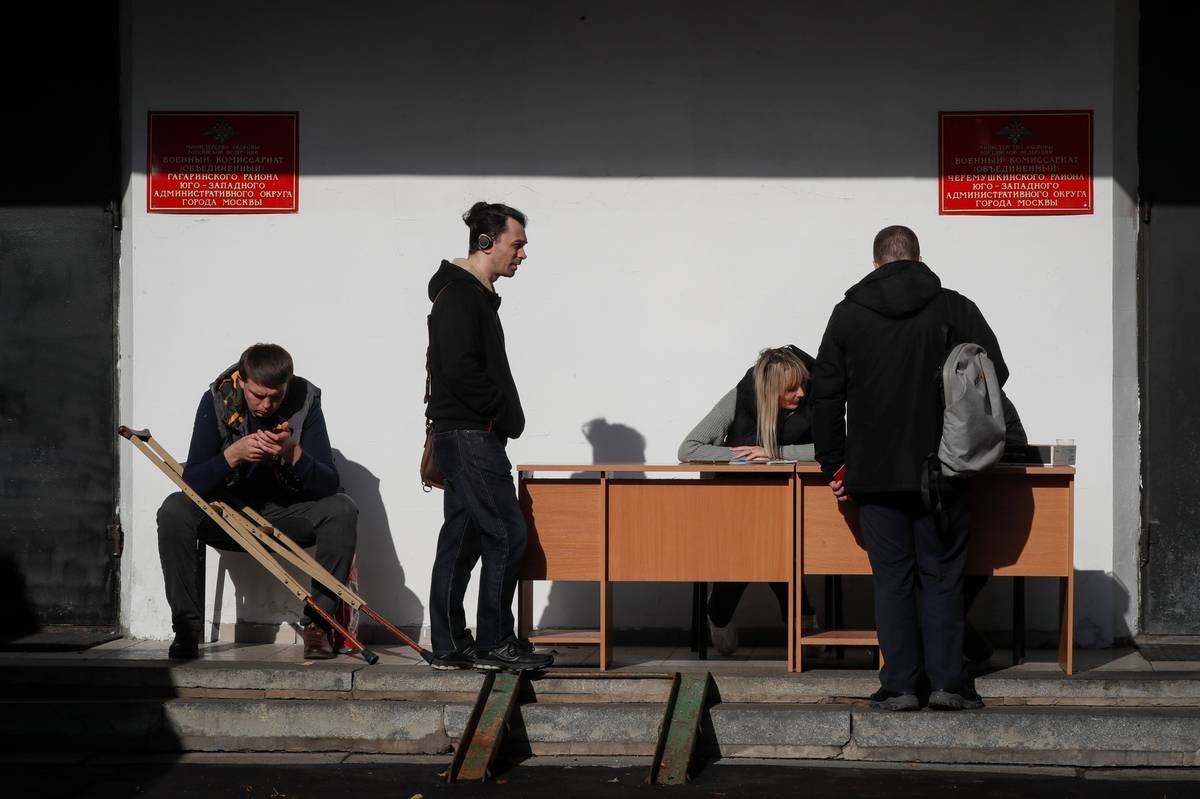Ruští branci přijíždějí do moskevské náborové kanceláře během částečné mobilizace (27. září).