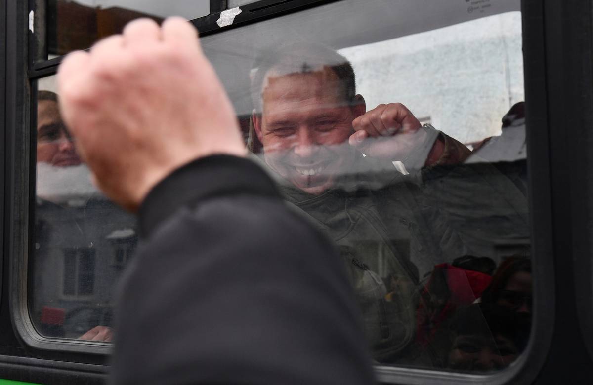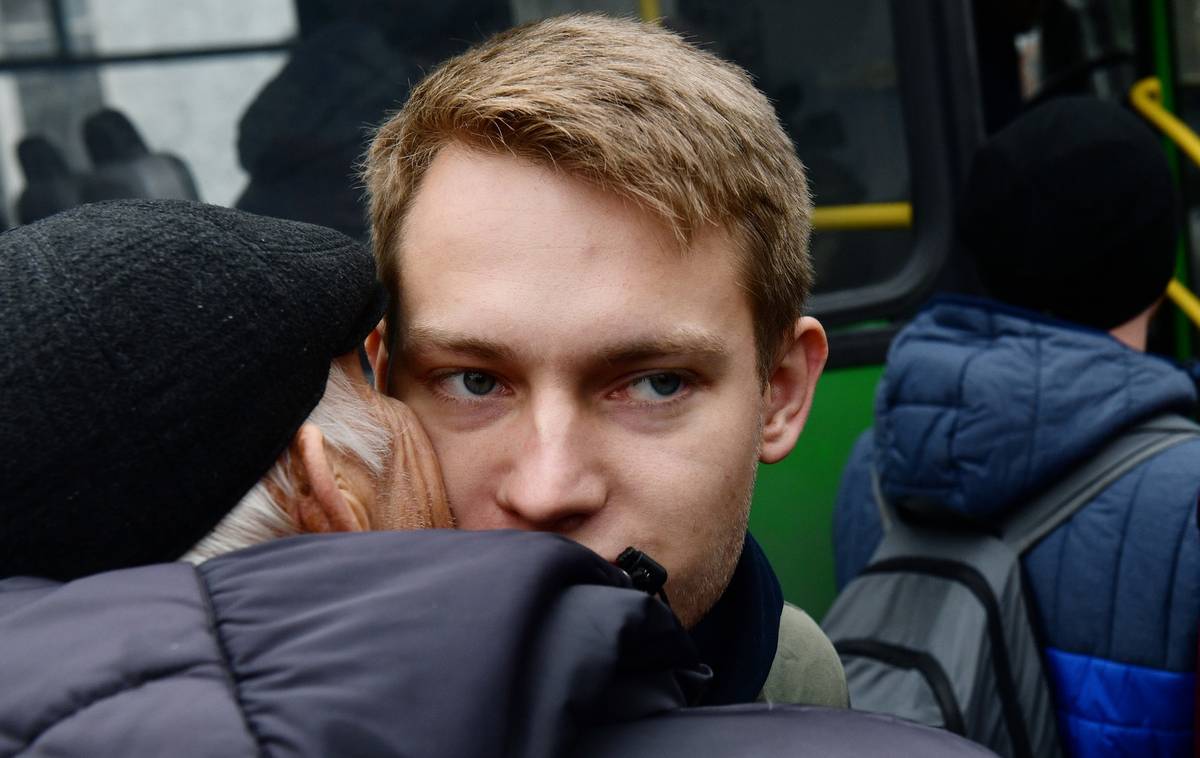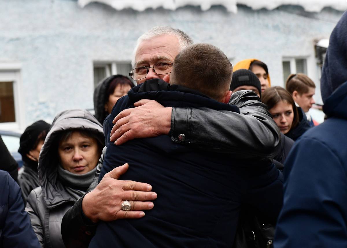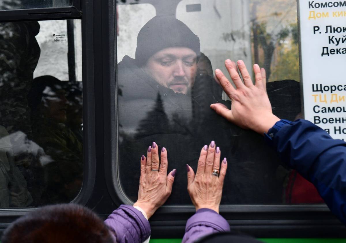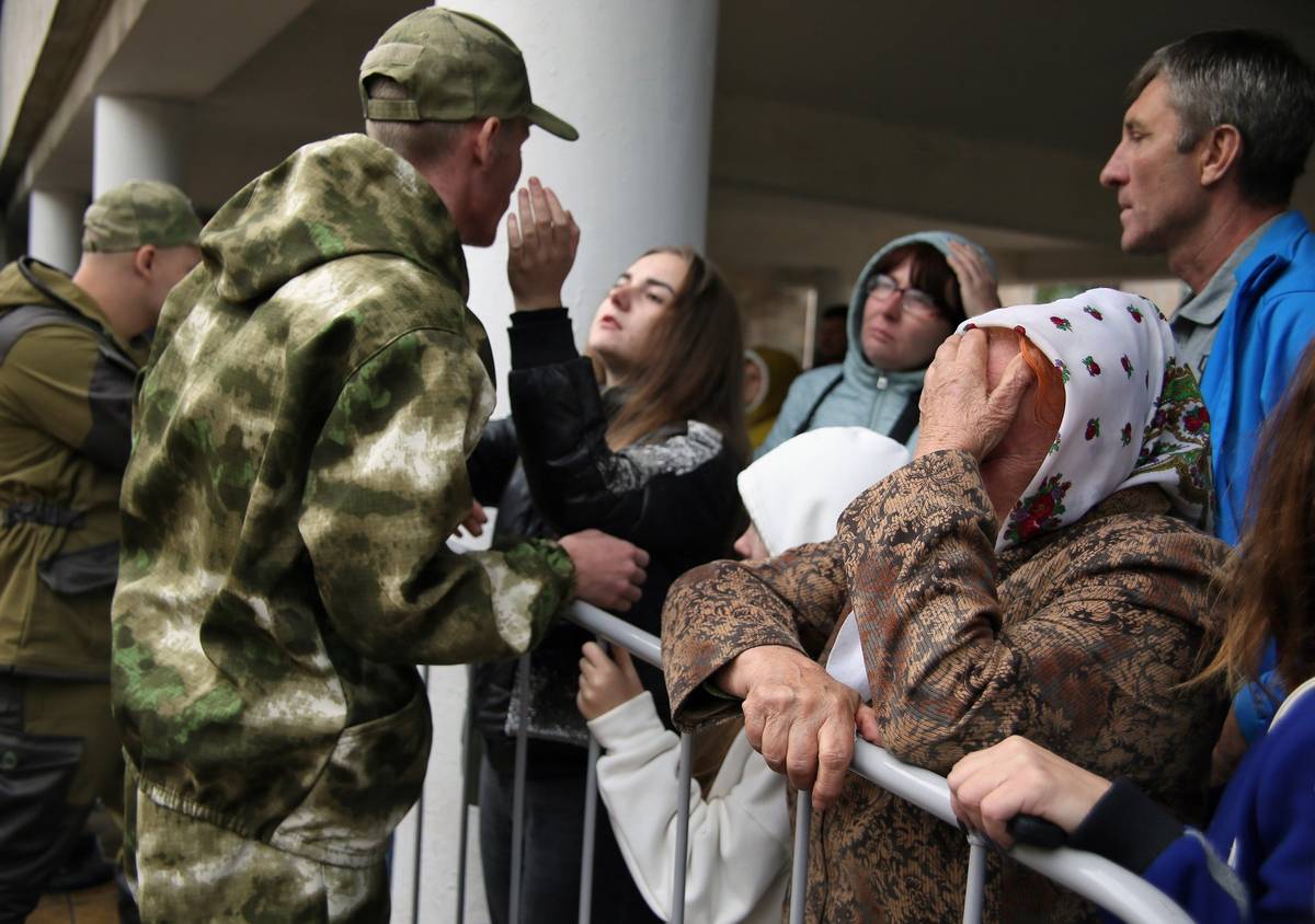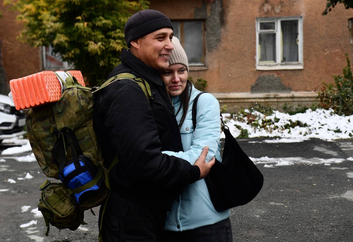 Blízcí se loučí s odvedenými rekruty 27. září v Jekatěrinburgu.