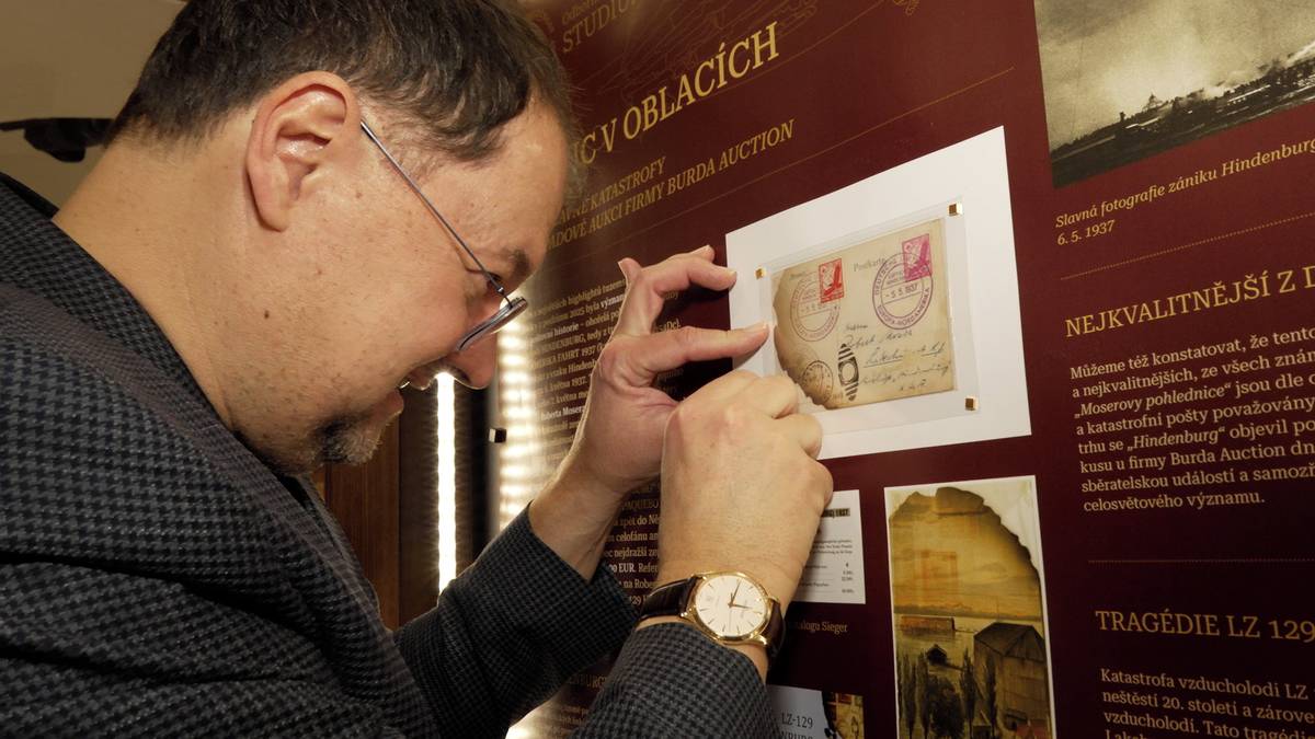 Ohořelá pohlednice ze zeppelinu Hindenburg