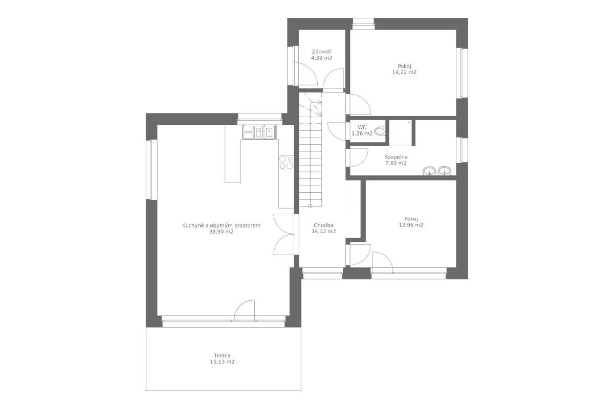 Dispozice 5+kk byla navržena s ohledem na společné trávení času celé rodiny.