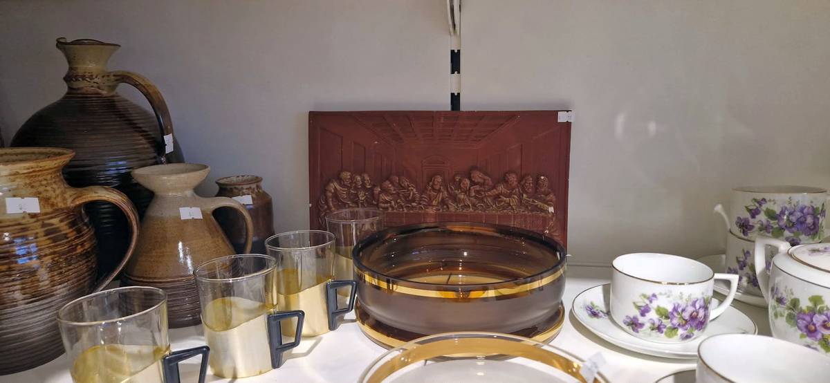 Mezi nabízenými předměty je i tato keramická Poslední večeře Páně, vytvořená podle slavného díla Leonarda da Vinciho.