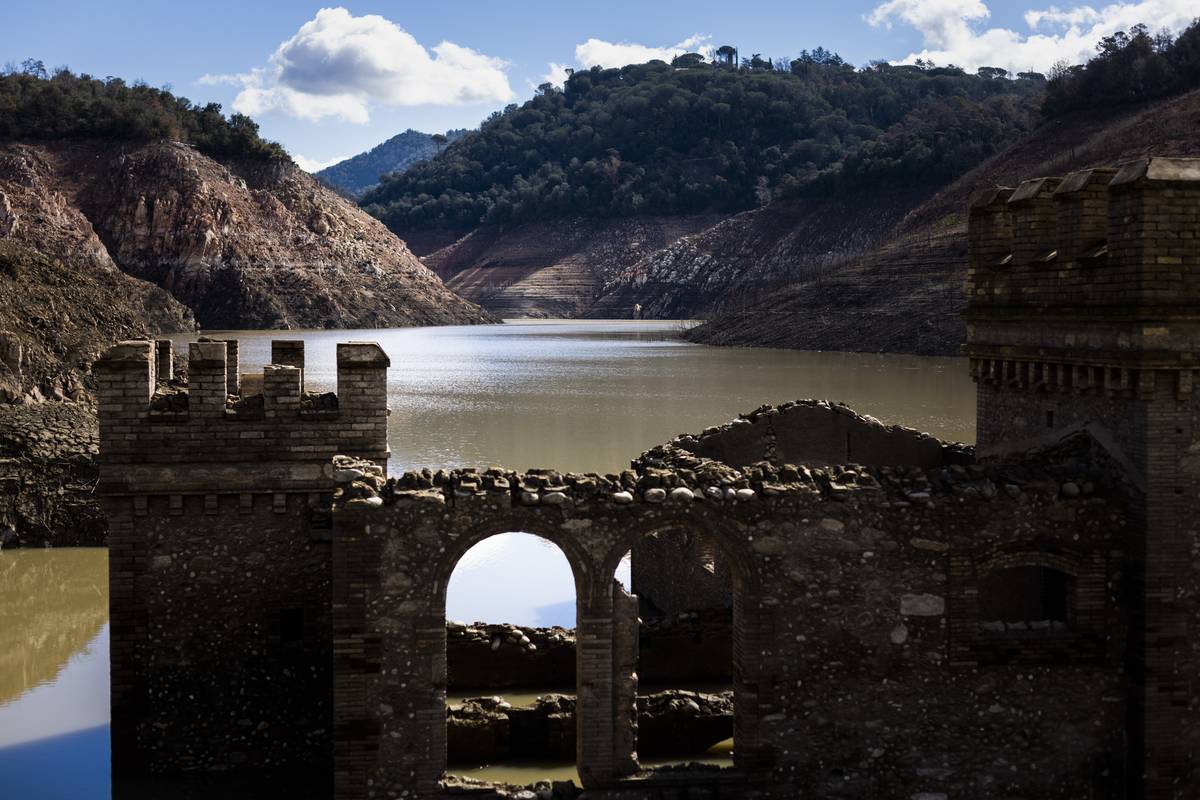 „Ještě nedávno jsem na paddleboardu proplouval vrchním oknem kostela,“ vzpomíná čtyřicátník Joan na dně přehrady Sau. Nyní se tam projdete suchou nohou. Přehrada byla dokončena v roce 1962 zatopením města Sant Romà de Sau. Její skladovací kapacita je 151,3 hektometru krychlových.