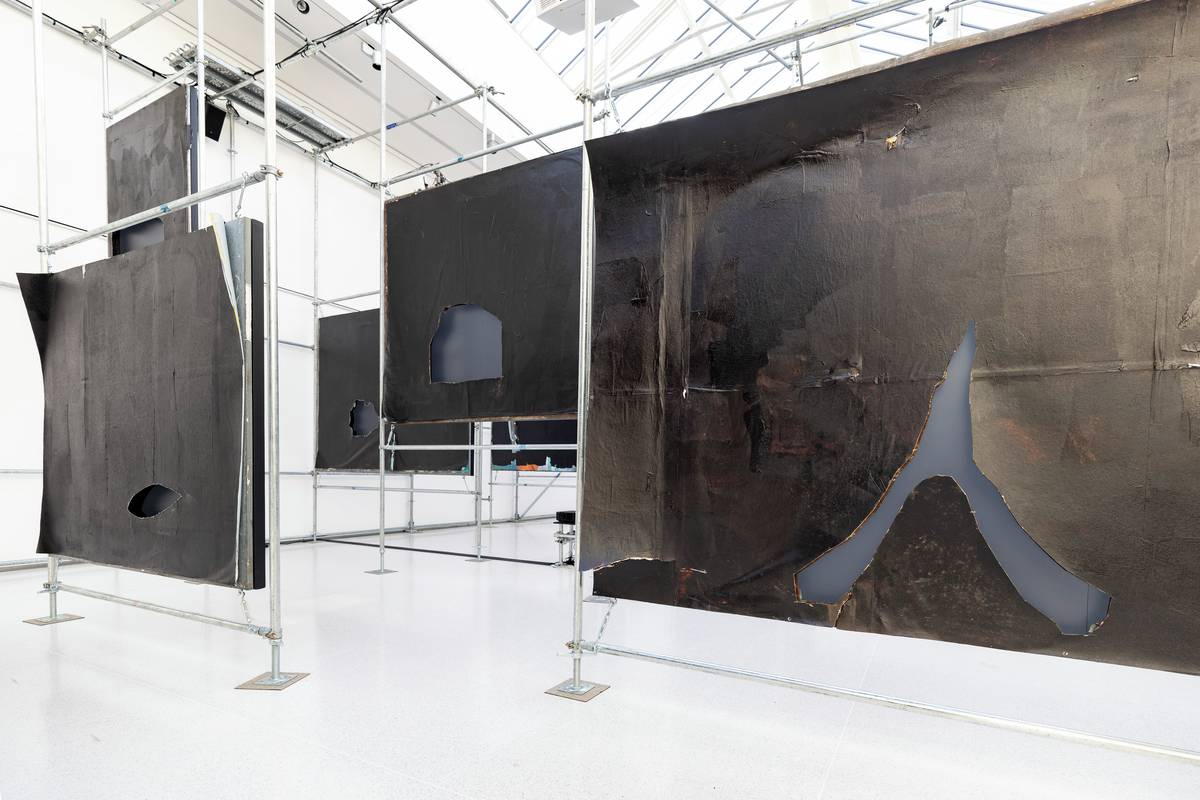 V Mánesu připravil výstavu, která útočí na všechny smysly. Když do ní vstoupíte, ochromí vás hluk rychle jedoucích aut jako z rušné silnice, do nosu praští pach gumoasfaltu. Uklidňující prvek: díry v billboardech, kterými prosvítají stromy.