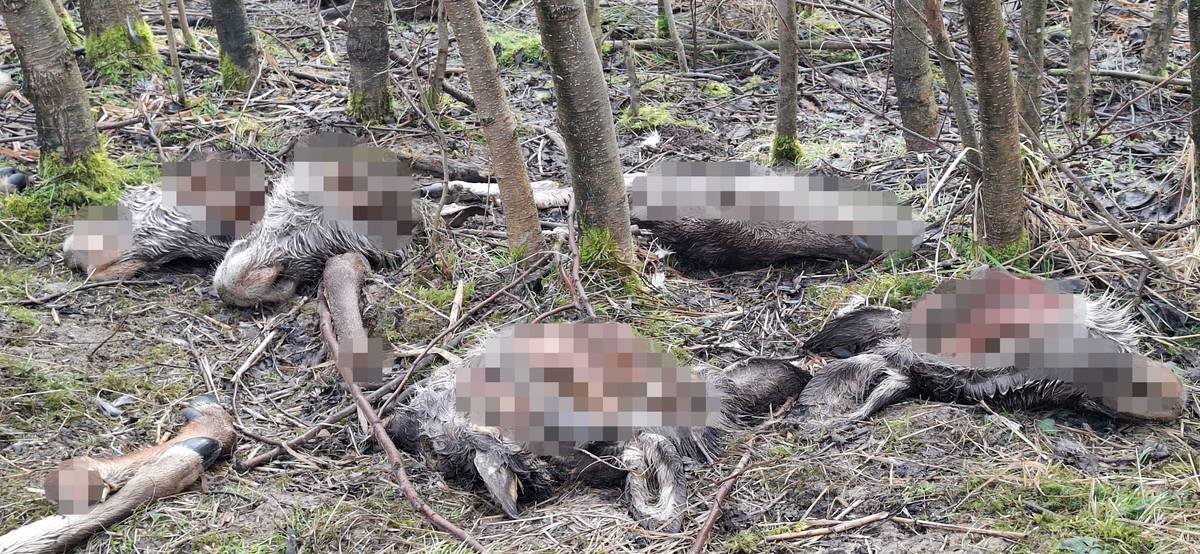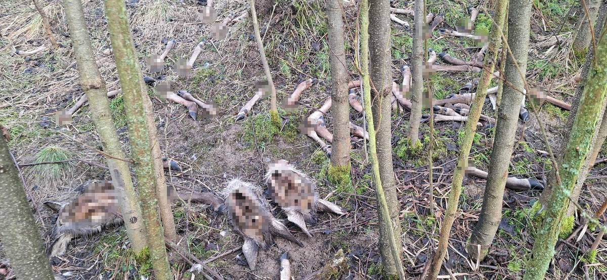 Zvěř roznesla kusy těl po blízkém okolí.