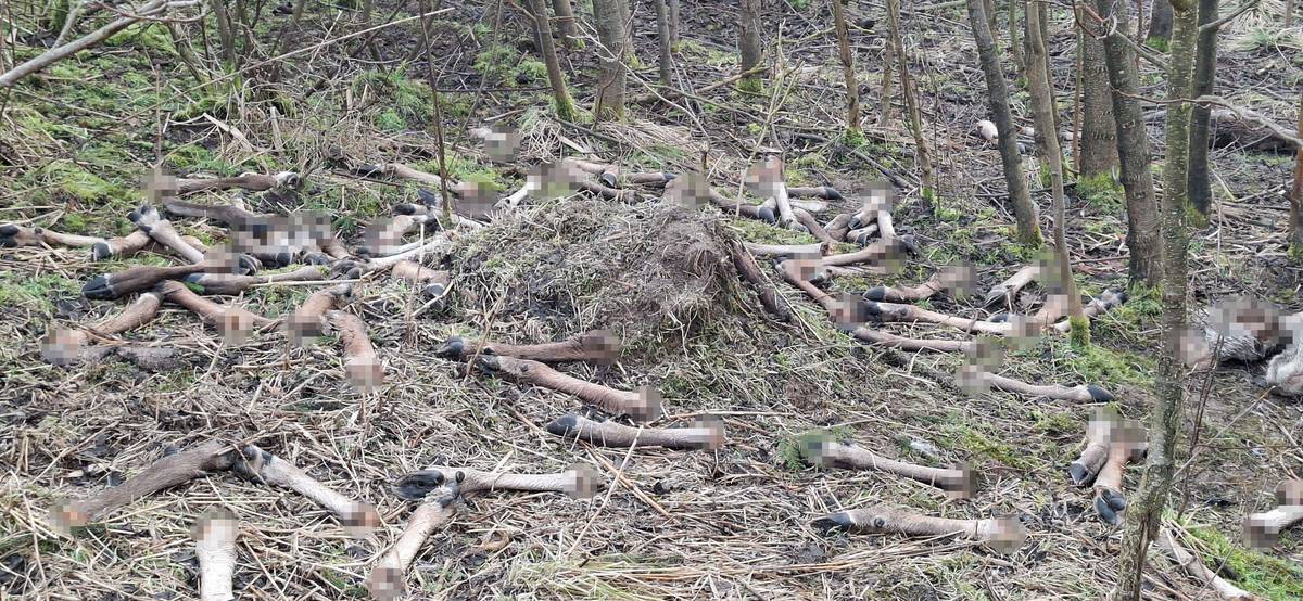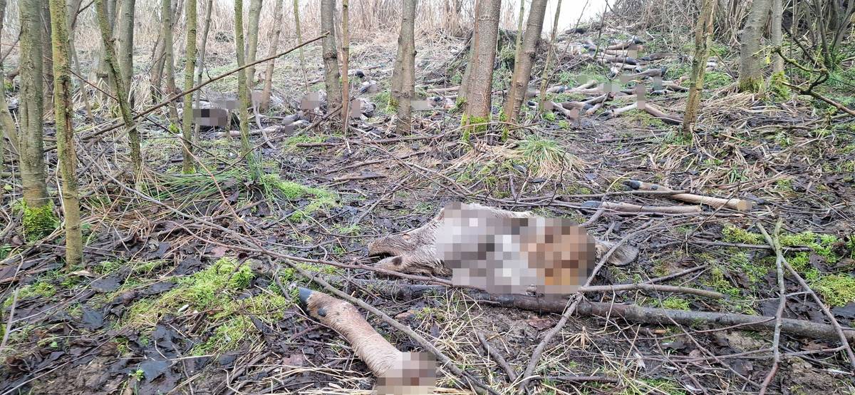 Vedle pozůstatků vysoké zvěře leží v lese i tlející těla dvou divočáků.