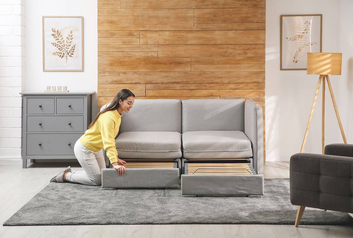 Rozložením skládací sedačky vytvoříte předěl a také získáte dvoulůžko pro spánek.