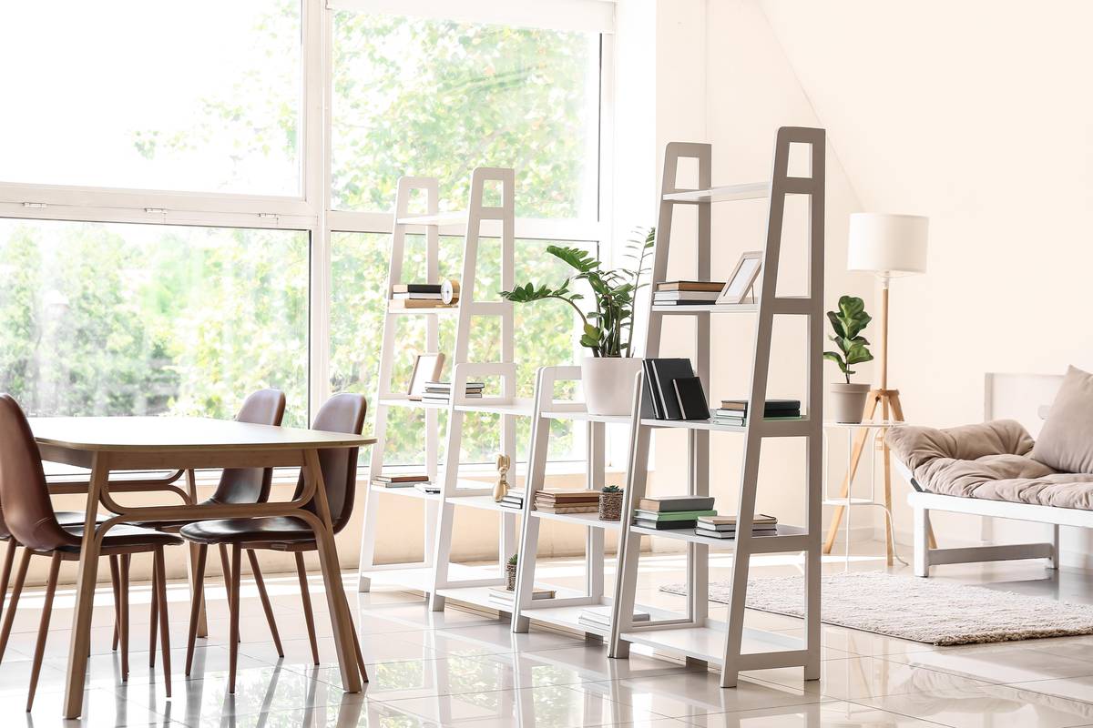 Otevřený policový díl hravě zastane funkci polopříčky a propouští denní světlo dovnitř.