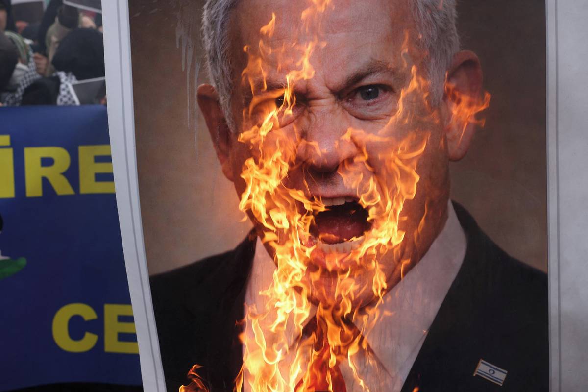 V plamenech při istanbulských protestech skončil i portrét izraelského předsedy vlády Benjamina Netanjahua.