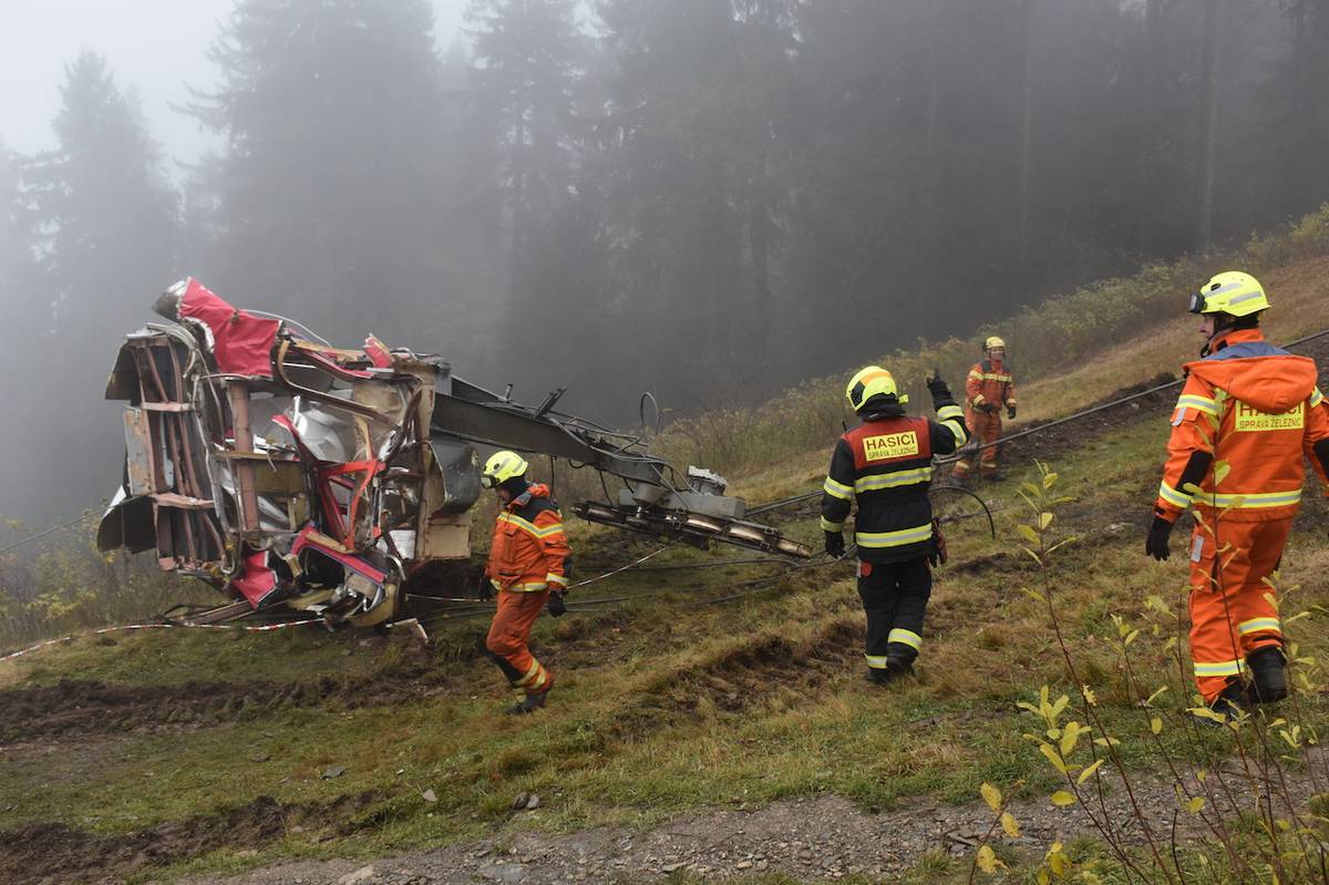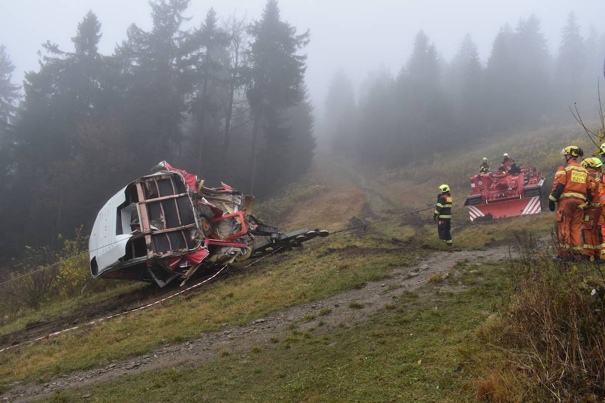 Drážní hasiči začali v úterý dopoledne odstraňovat vrak spadlé kabiny lanovky.