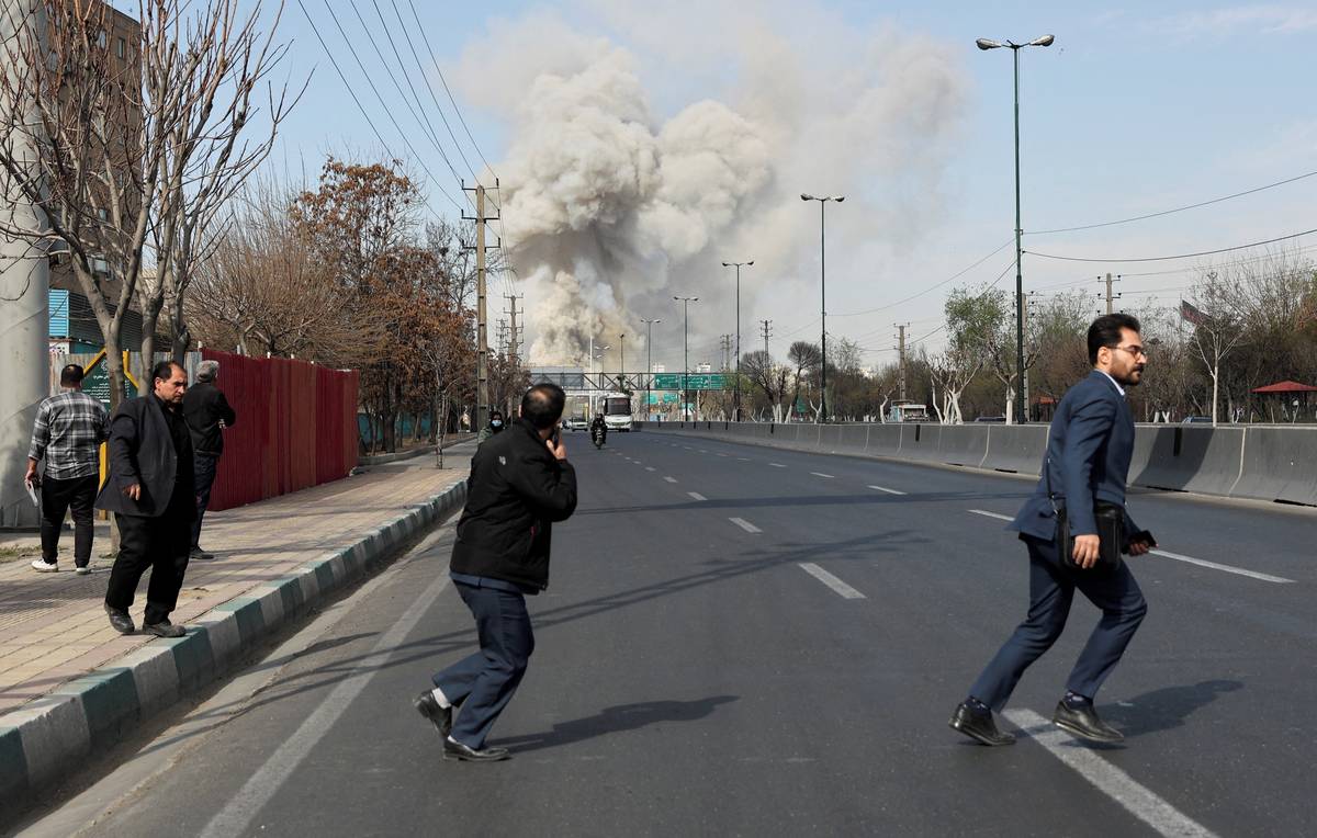 Lidé utíkají před kouřem stoupajícím po výbuchu v Teheránu, 5. března.
