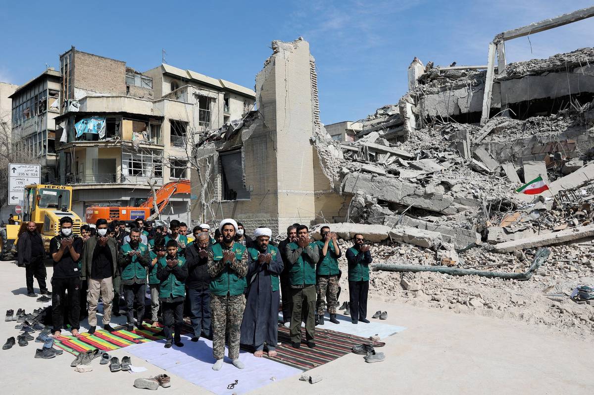 (Lidé se modlí po útoku, 4. března v Teheránu.)