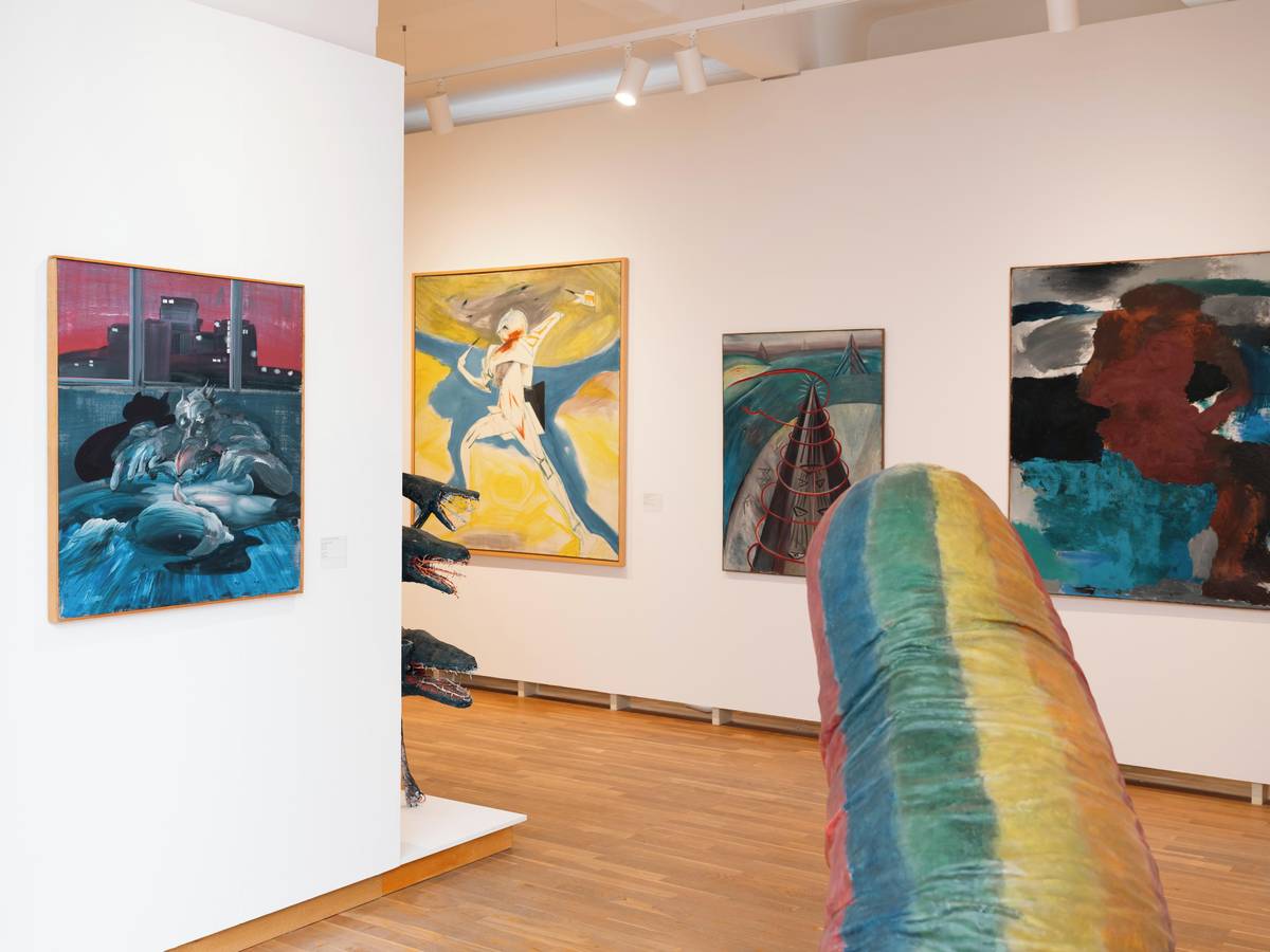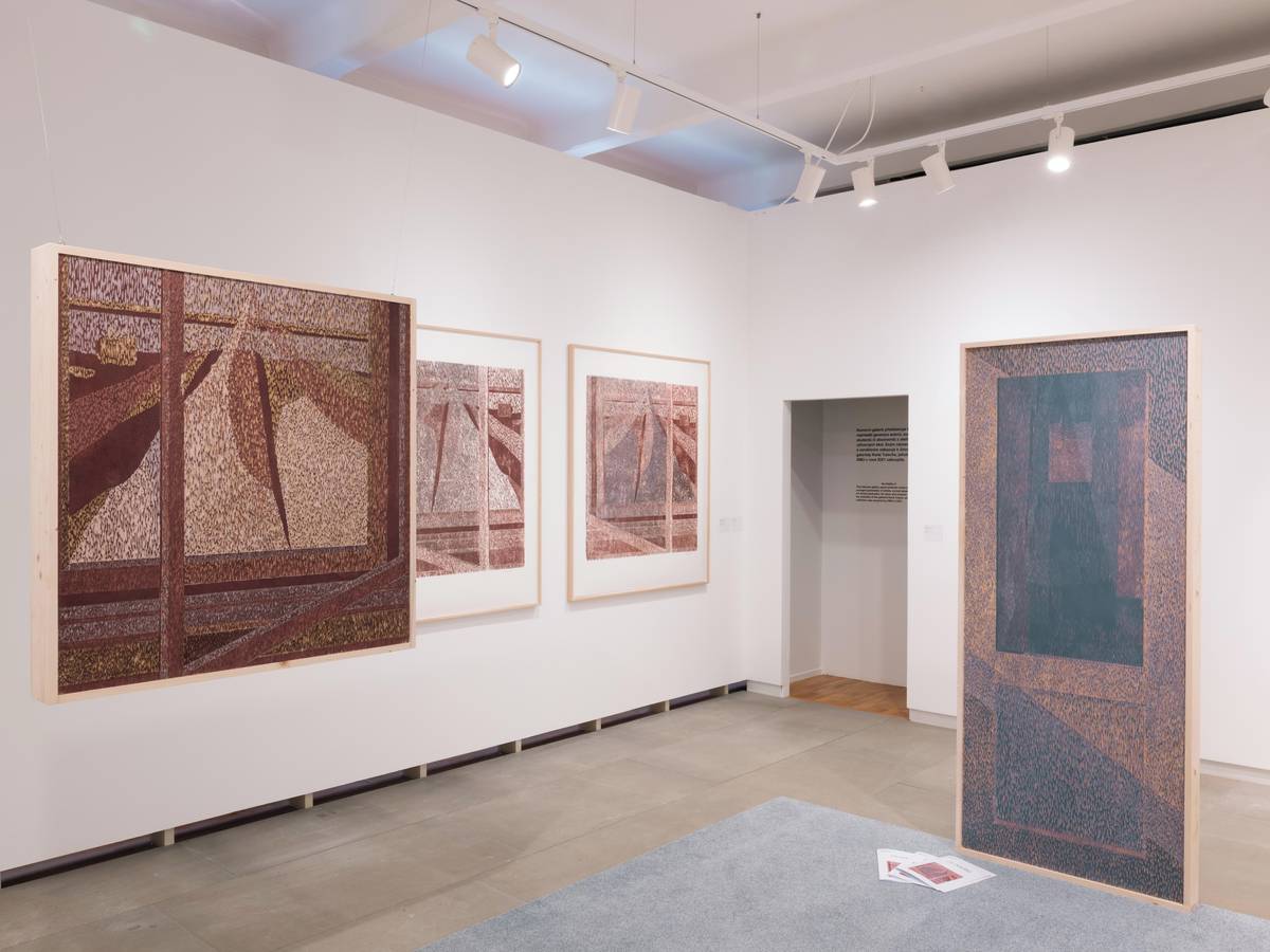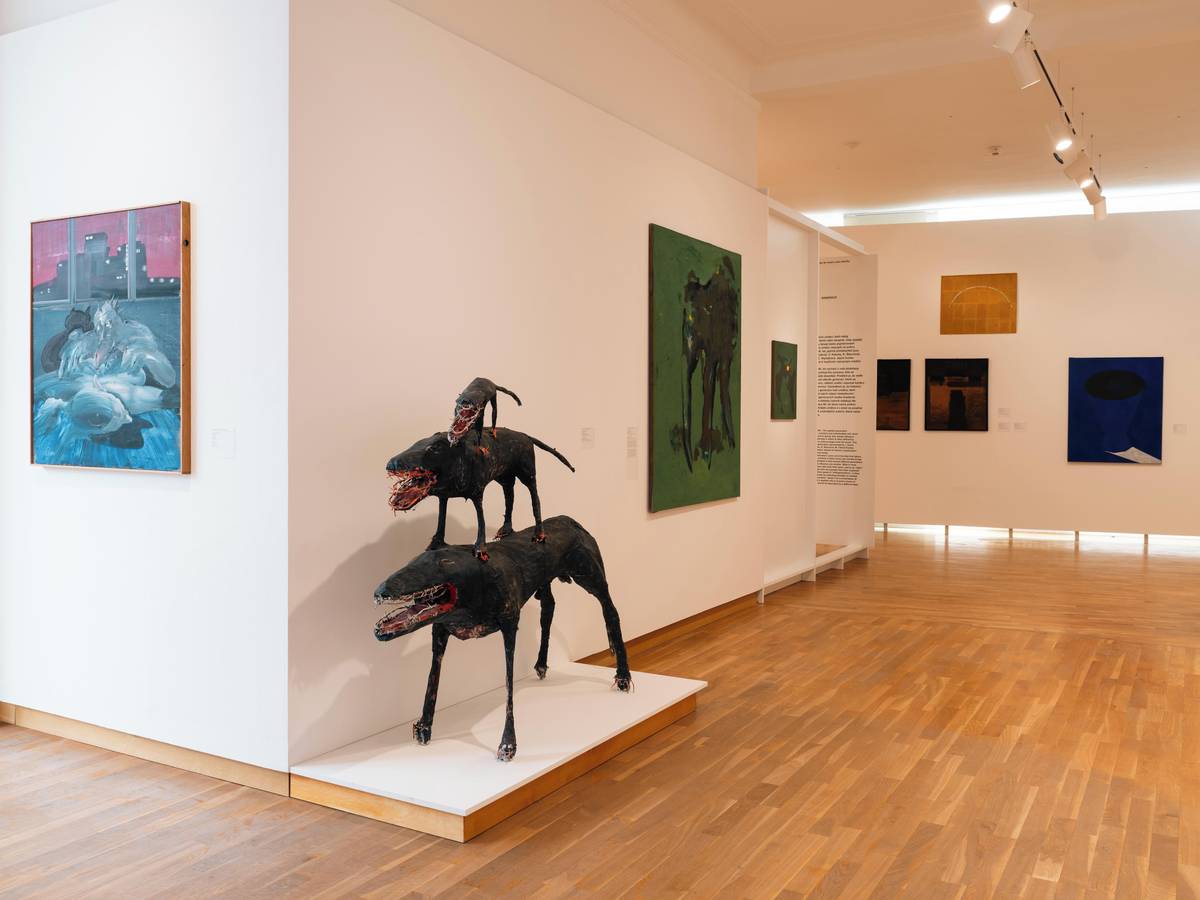 Na fotografii z nové stálé expozice nazvané České umění 20. století a jeho škatulky, kterou lze v Galerii moderního umění v Hradci Králové vidět až do ledna 2030, je obraz Robot hledí od Víta Soukupa z roku 1999.
