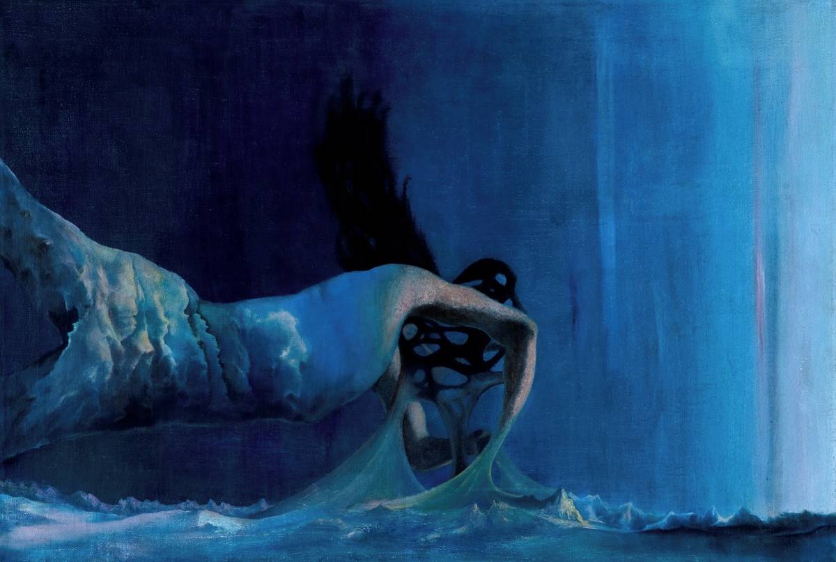 Stanislav Diviš: Proudění, 1986, akryl, plátno, 140 × 160 cm, sbírka GMU.
