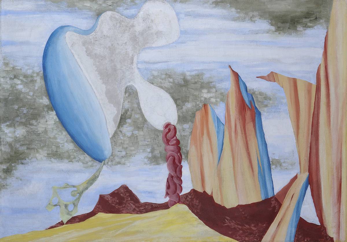 Jindřich Štýrský: Z Českého ráje, 1931, olej, plátno × 135 cm, sbírka GMU.