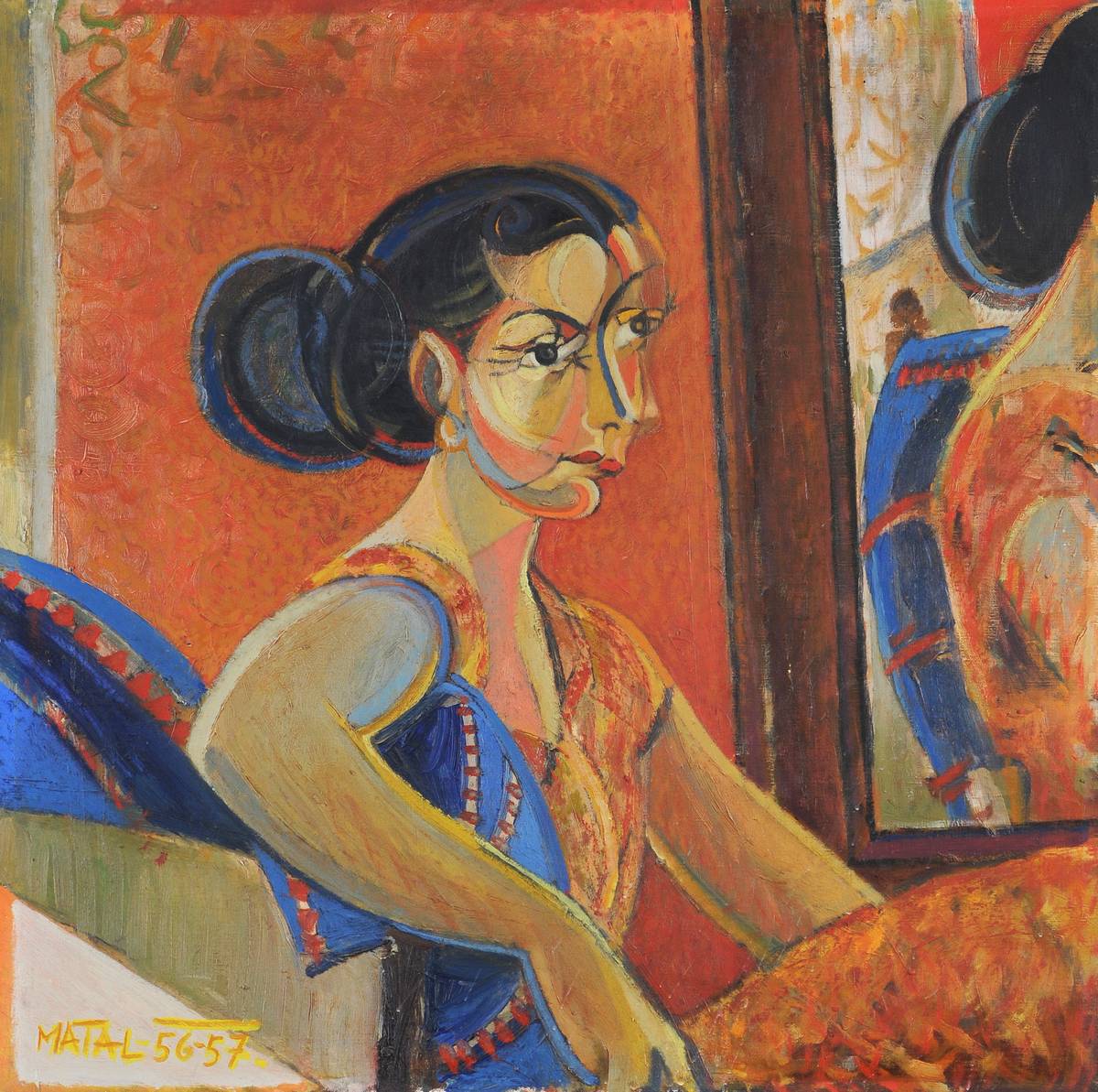 Bohumír Matal: Zrcadlo s figurou, 1956-1957, olej, plátno, 71 × 71 cm.