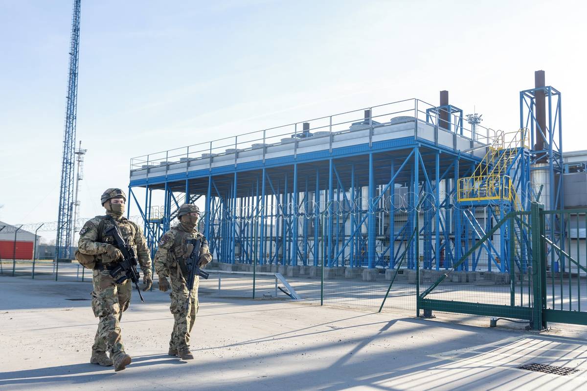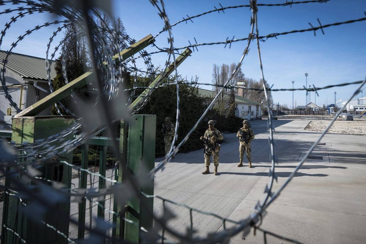Vojáci střežící zásobníky plynu u Algyő na jihu země.