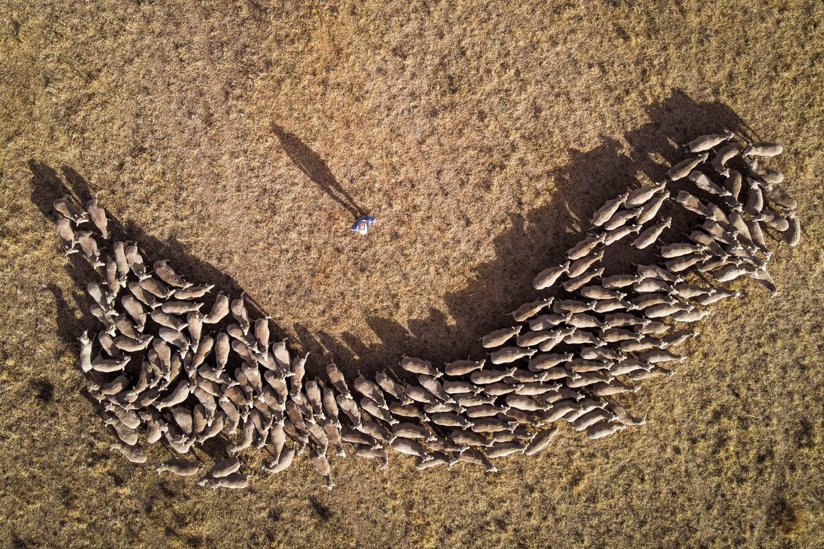 (Pasoucí se stádo v Dubbo Solar Hub, 19. ledna.)