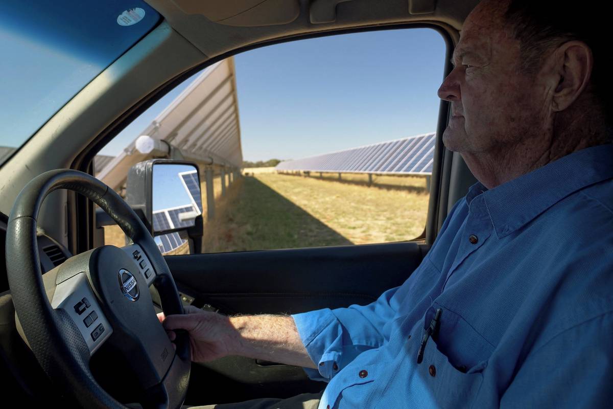 Farmář a vlastník pozemků spolupracuje s firmou Neoen, zabývající se obnovitelnými zdroji energie, již více než deset let a přiznal, že zpočátku se obával, že panely omezí pastvu jeho ovcí.