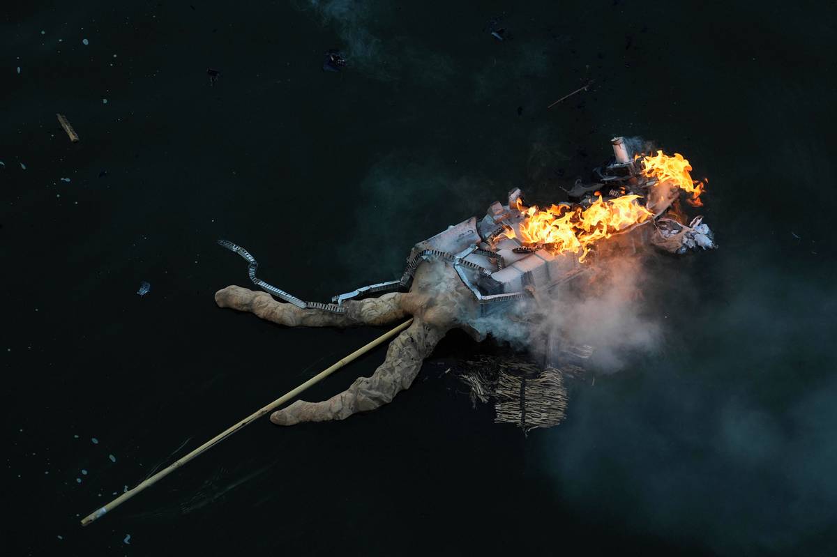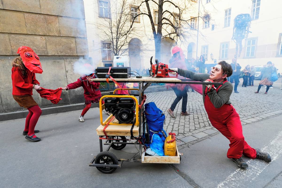 Vynášení Motorany - symbolické figury ztělesňující destruktivní politiku současné vlády