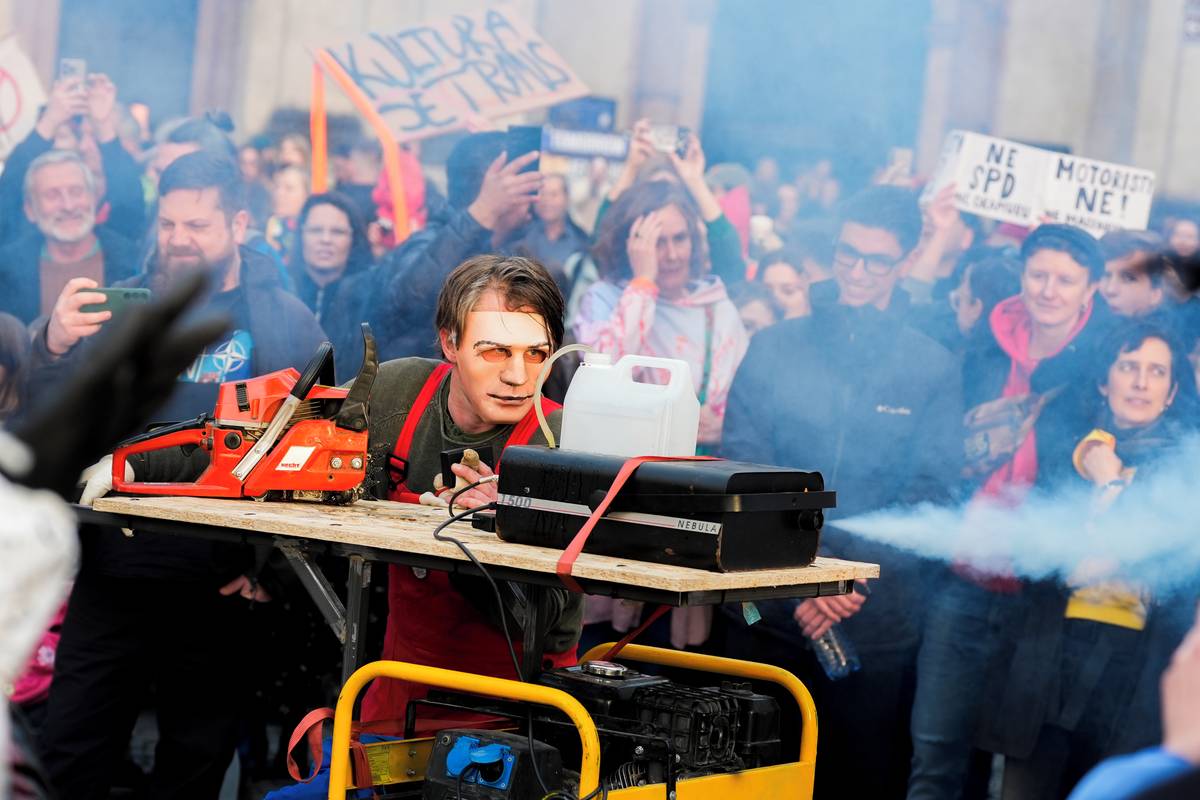 Představitel ministra Macinky pouštěl kouř a startoval motorovou pilu.