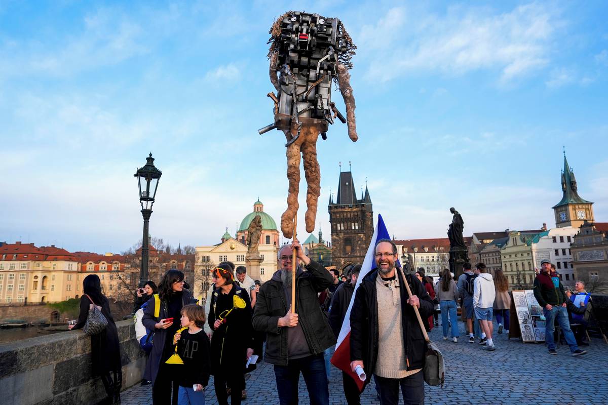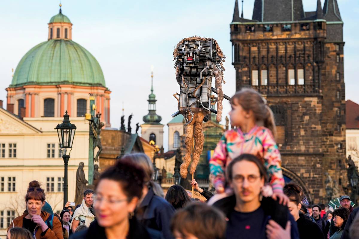 Průvod došel do poloviny Karlova mostu.