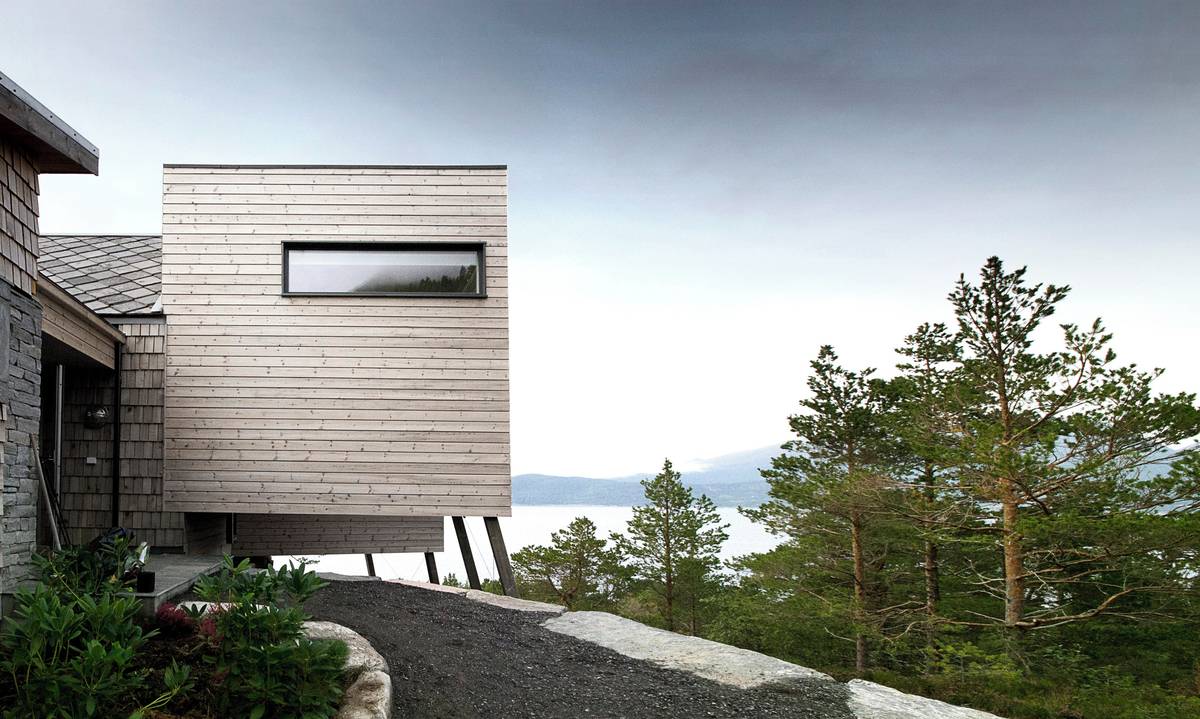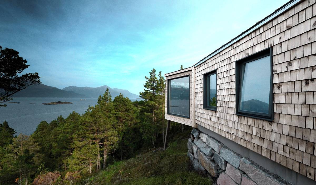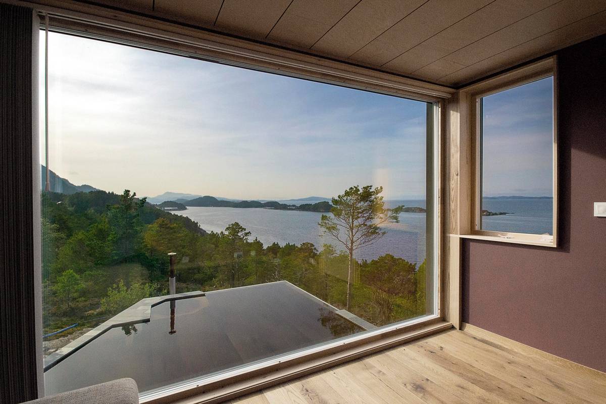 Velká okna přivádějí do interiéru spoustu světla. To je v této severské oblasti hodně důležité.