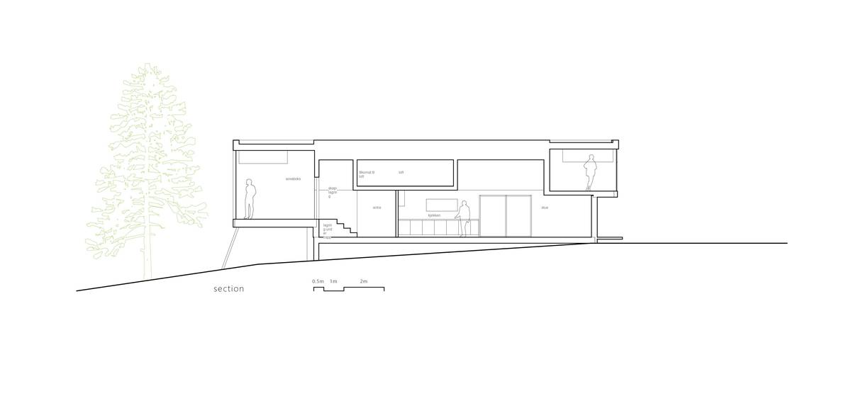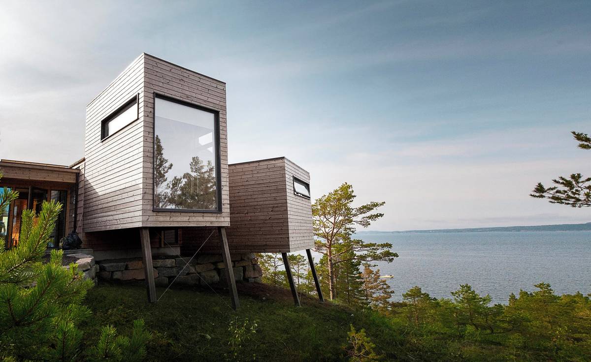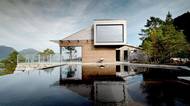 Dřevěné boxy působí, jako by na chatu byly dodatečně nalepené.