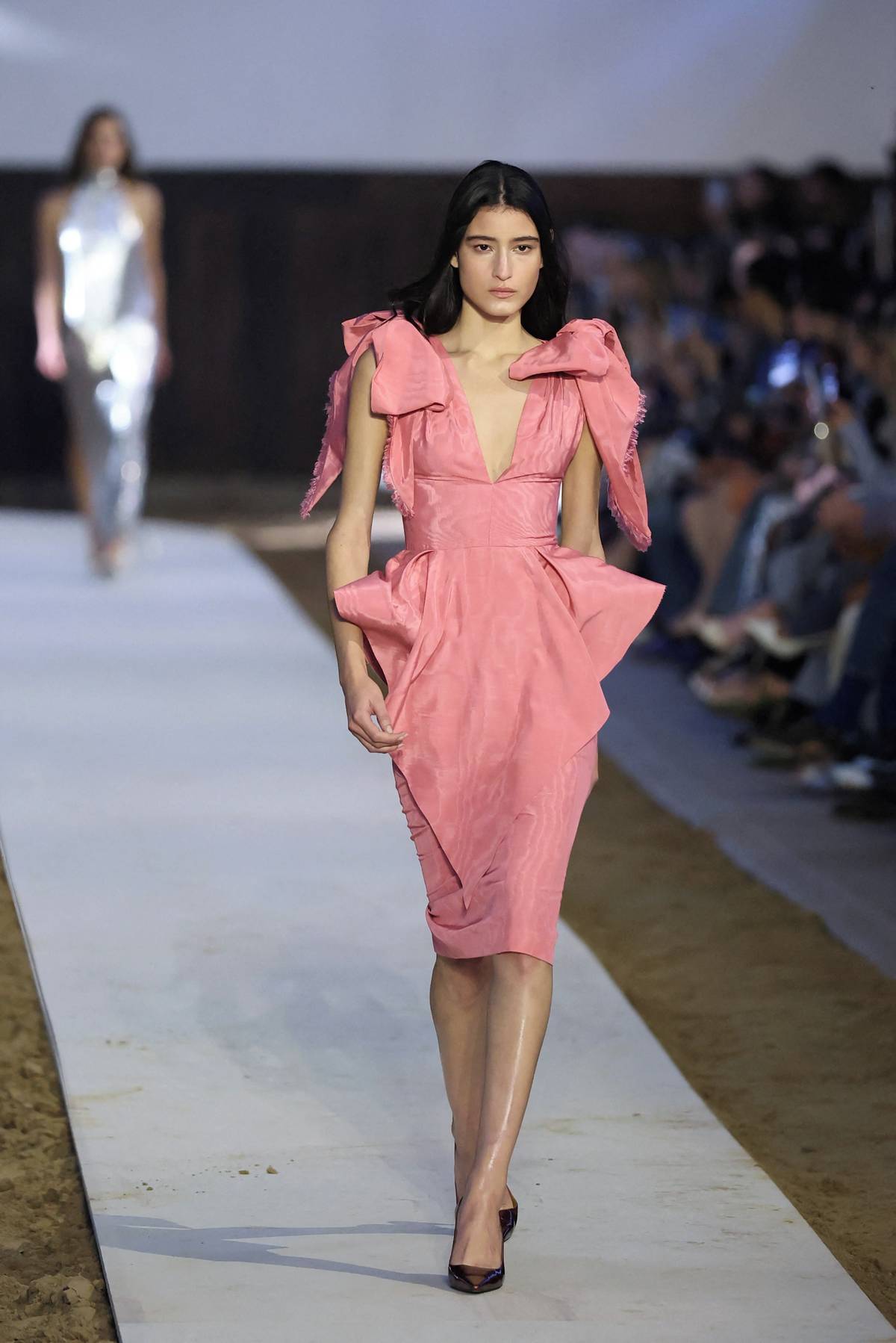 Hedvábné šaty s mašlí připomínaly období, kdy Stella McCartneyová byla na stáži v módních domech Lacroix a Yves Saint Laurent.