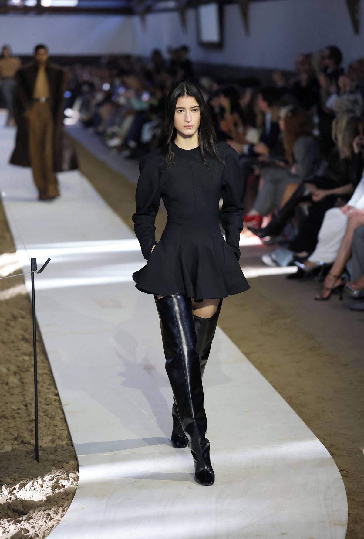 Součástí mnoha outfitů byly i vysoké jezdecké boty až do půli stehen.