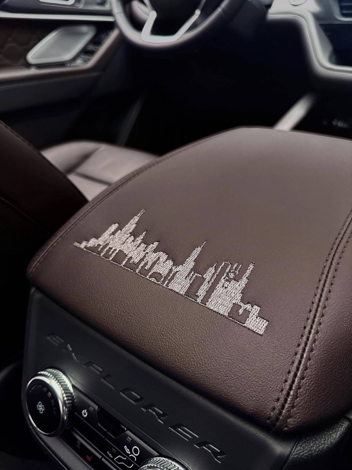 Ford Explorer pro Lva XIV. dostal řadu unikátních dekorů, jako je například silueta Chicaga a Baziliky svatého Petra na prazích dveří.