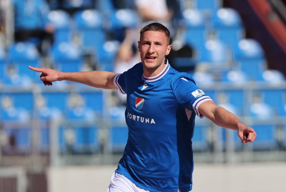 Ondřej Kričfaluši v dresu Baníku slavící úvodní branku