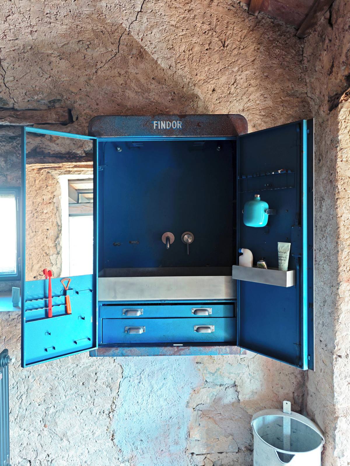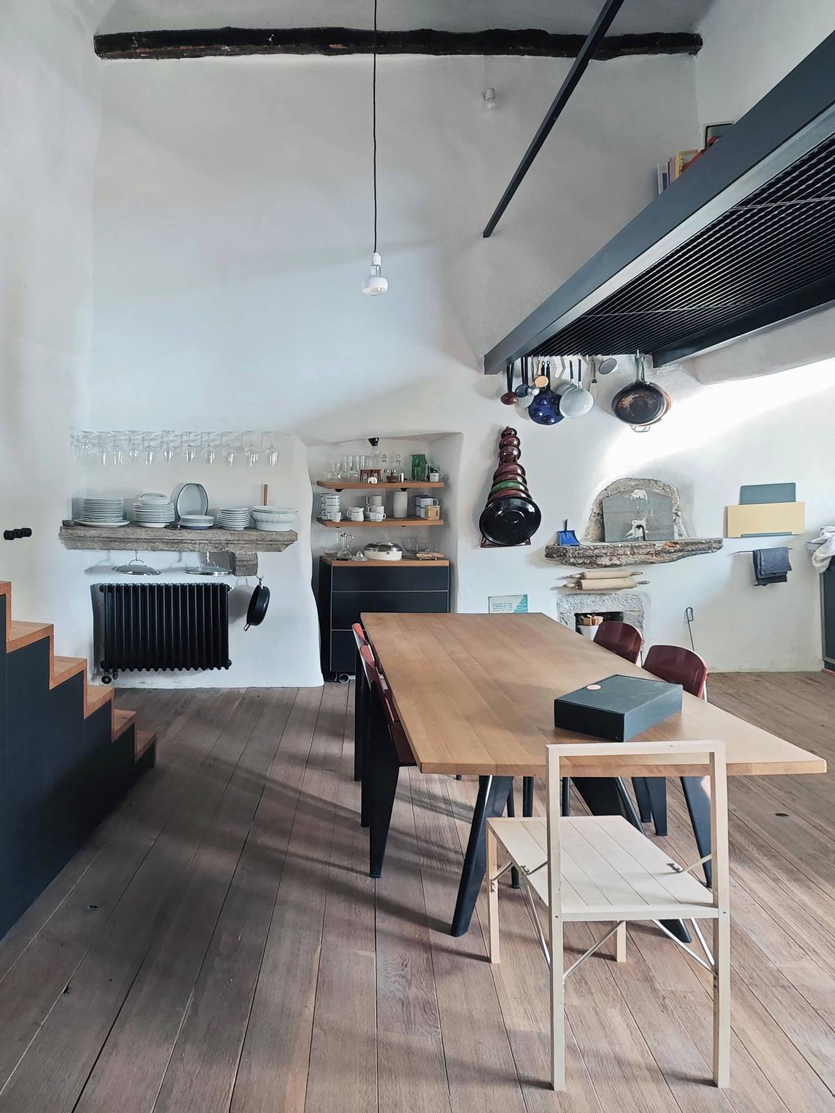 Interiér je zařízený kusy získanými z blešího trhu i rustikálními kusy z bleších trhů.