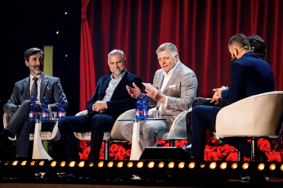 Zleva politici Směru Juraj Blanár, Tibor Gašpar, Robert Fico, zády Ján Mažgút.