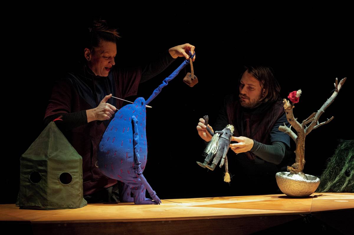 Na fotografii jsou loutkoherci Diana Čičmanová a Jakub Müller.