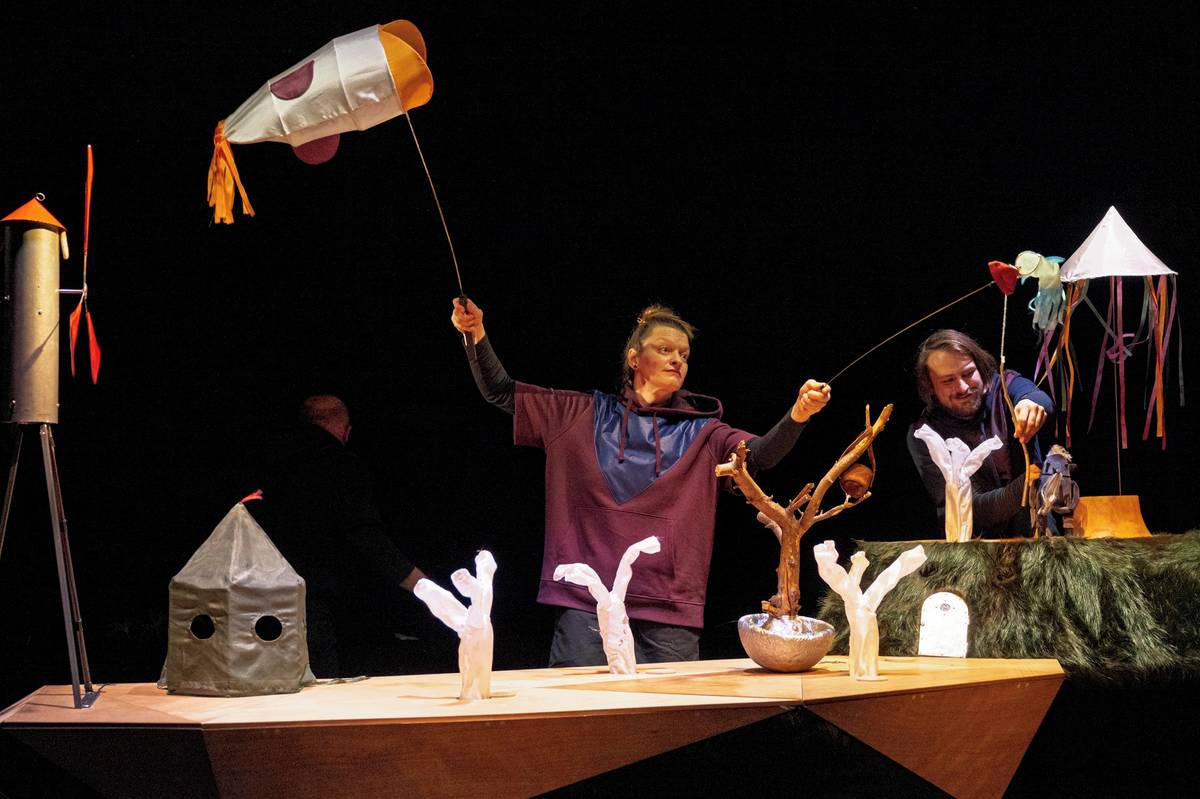 První letošní novinkou Naivního divadla v Liberci se stala loutková inscenace Větroplaši o světě spojeném s větrem.