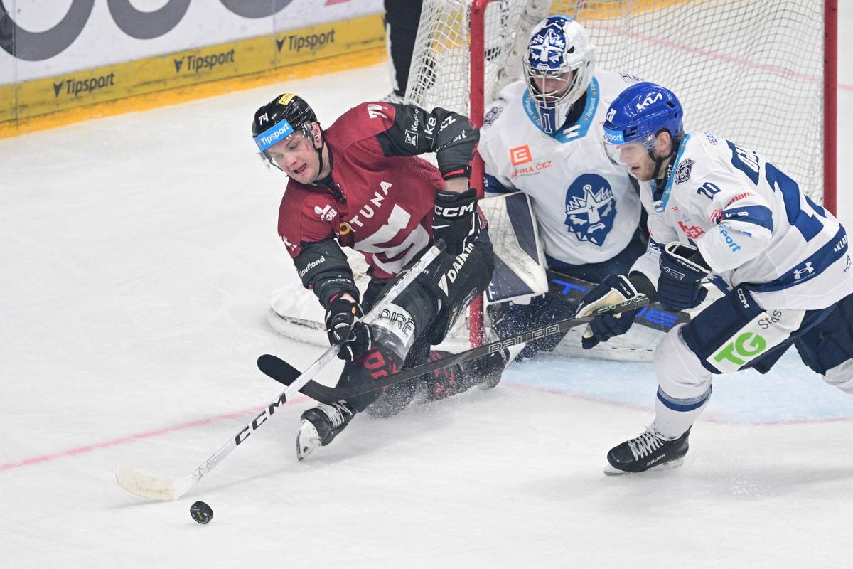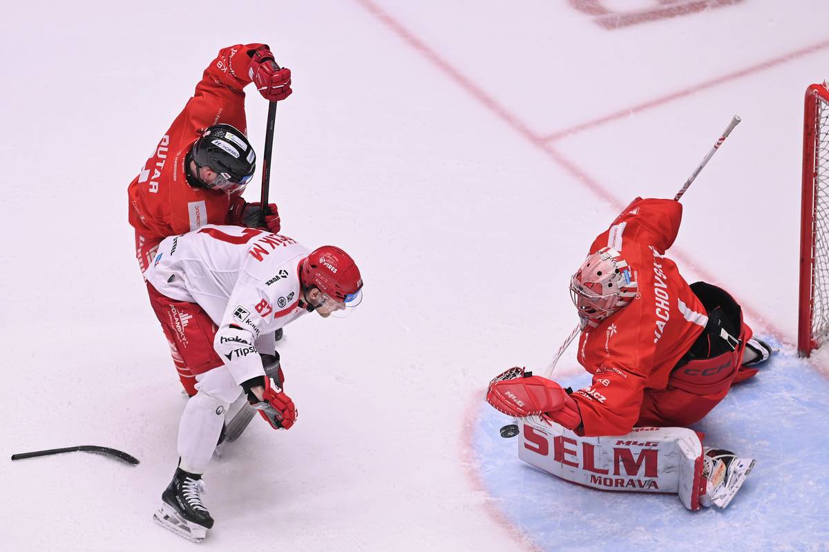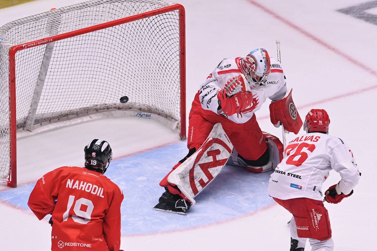 Třinecký gólman Marek Mazanec v sérii s Olomoucí poprvé inkasoval.