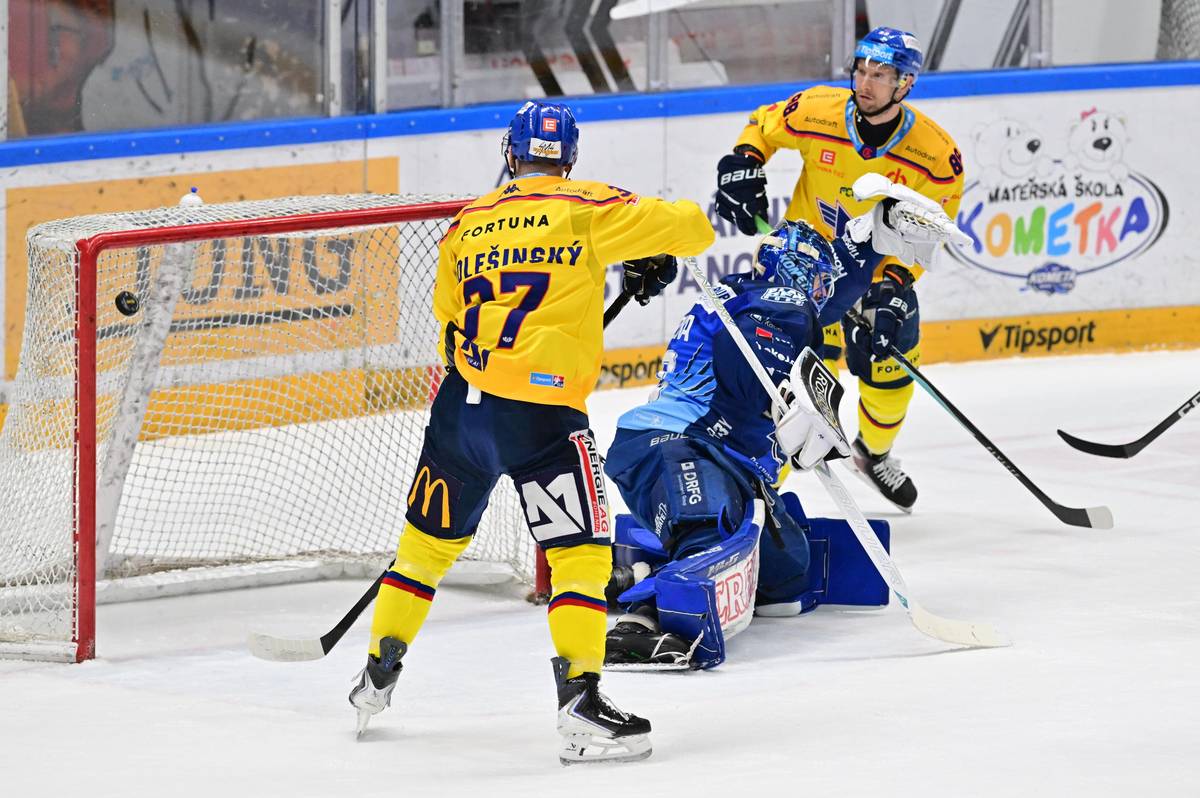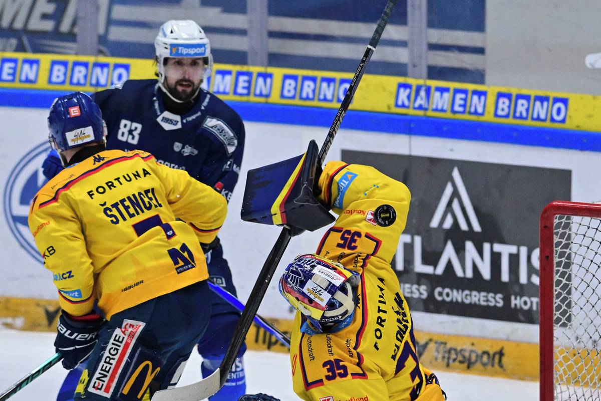 Brankář Komety Aleš Stezka inkasoval jako první.