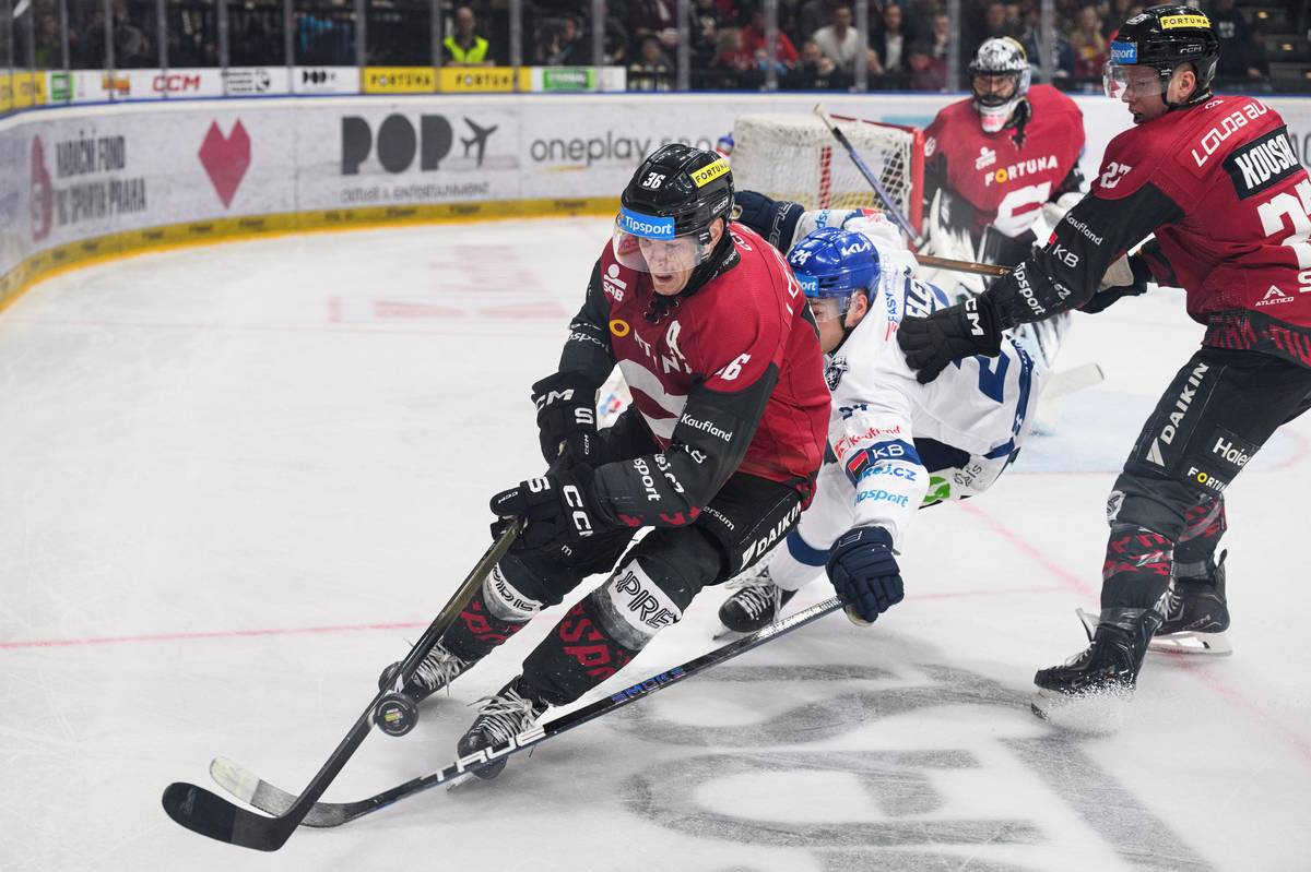 Zleva Adam Rutar z Olomouce a Michal Kovařčík z Třince