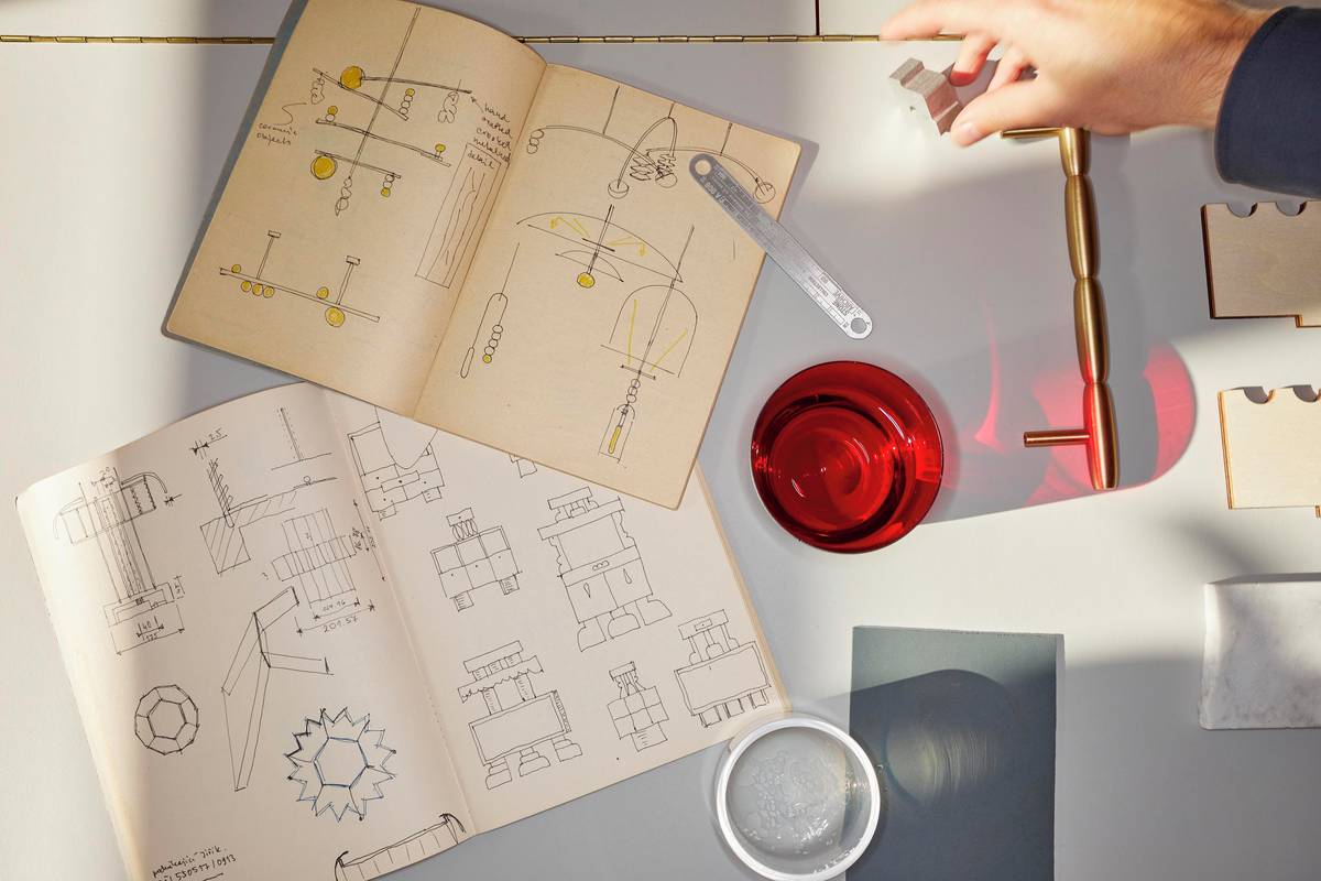 Prvotní skici interiérových kousků od Krejčiříka