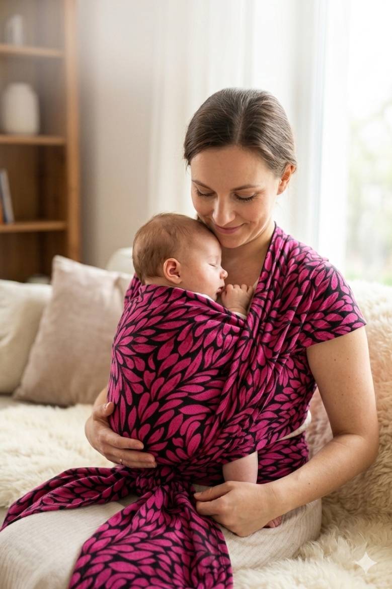 Šátek na nošení dětí na ženě