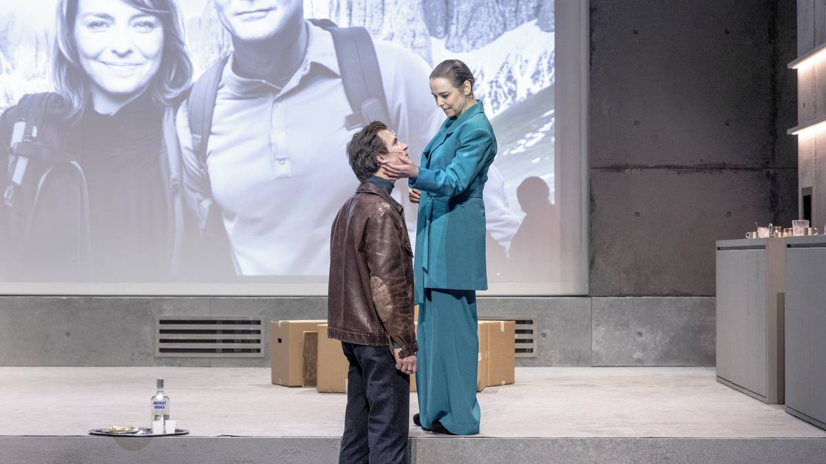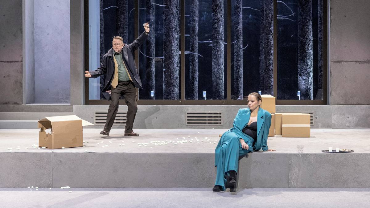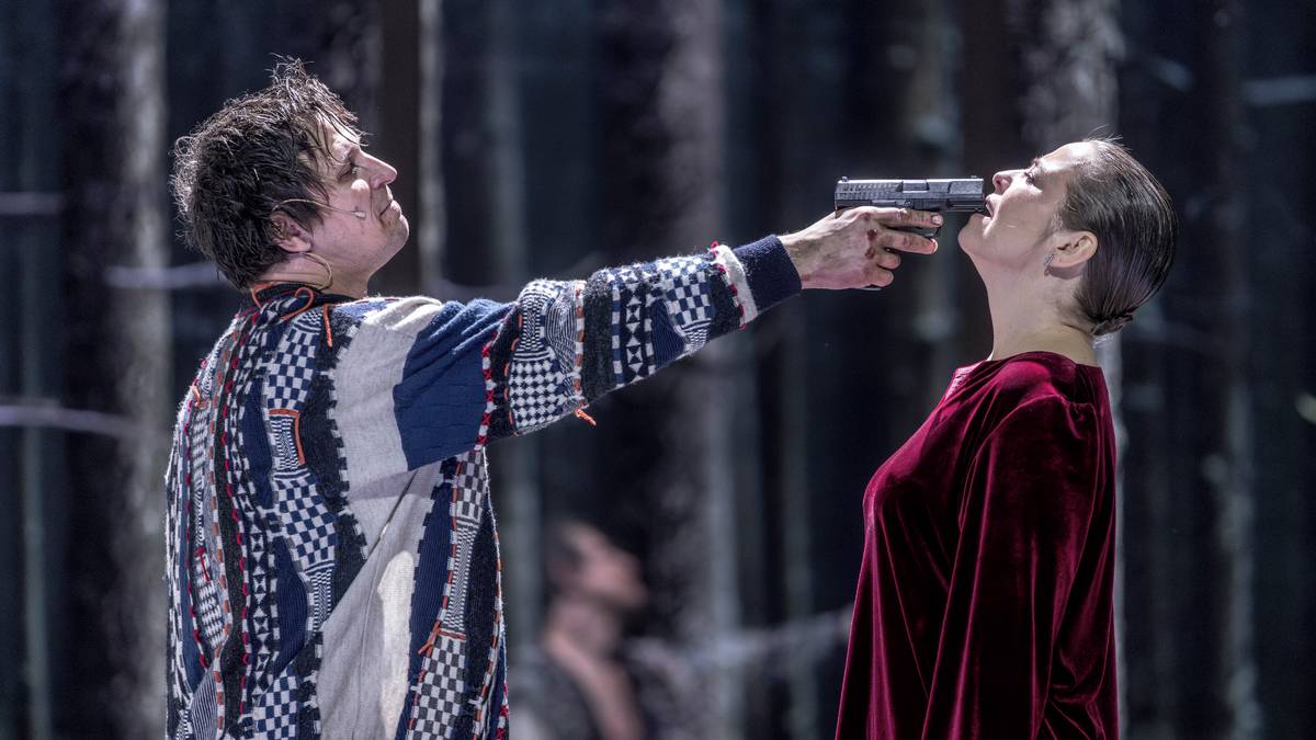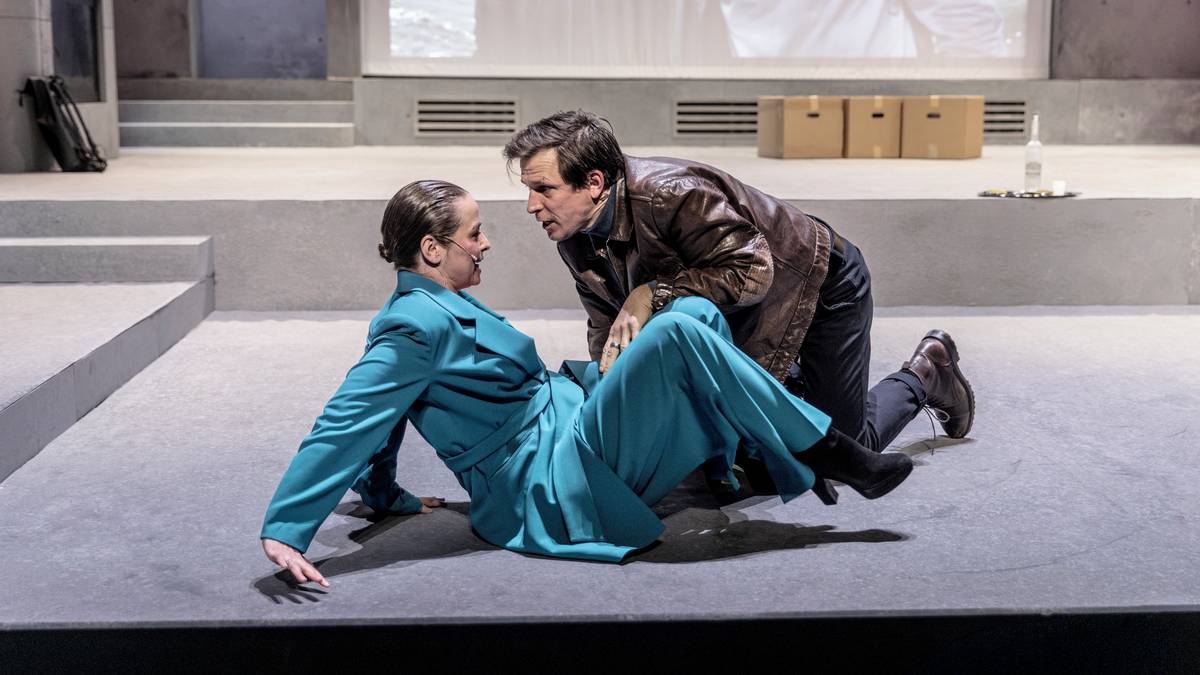 Na fotografii z inscenace Hedy Gablerové, kterou nově uvádí Národní divadlo, jsou Igor Orozovič jako Løvborg a Pavla Beretová v roli Hedy.