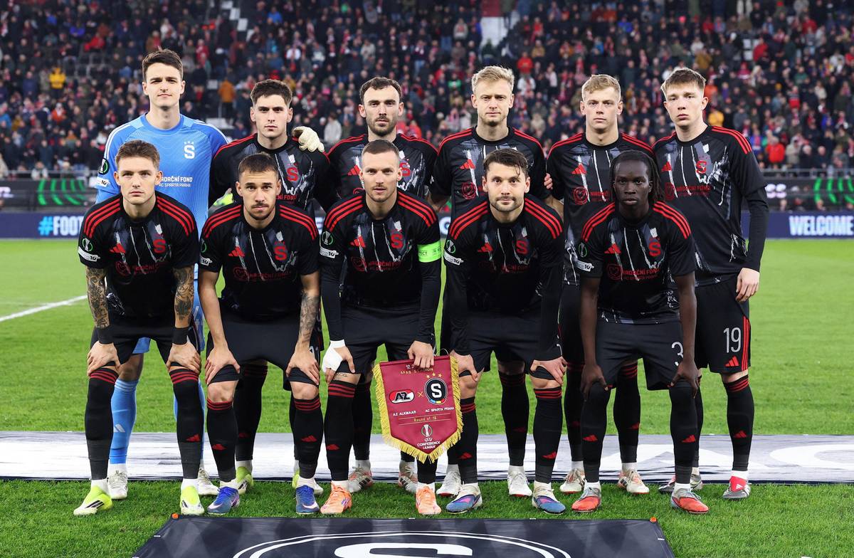 Sestava Sparty v čele s kapitánem Lukášem Haraslínem.